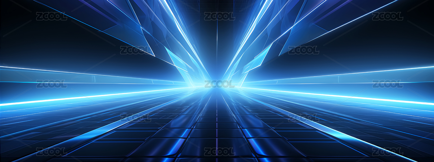 科技感蓝色光束光线光效隧道蓝色科技背景