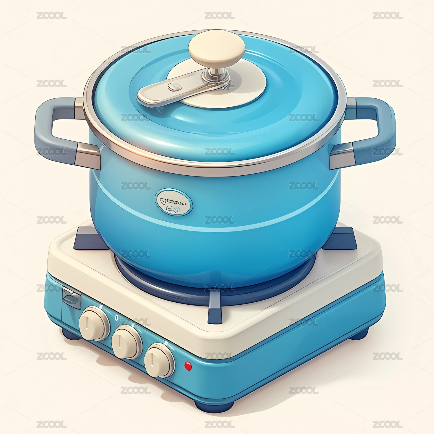 蓝色复古清新厨房餐具锅灶插画元素