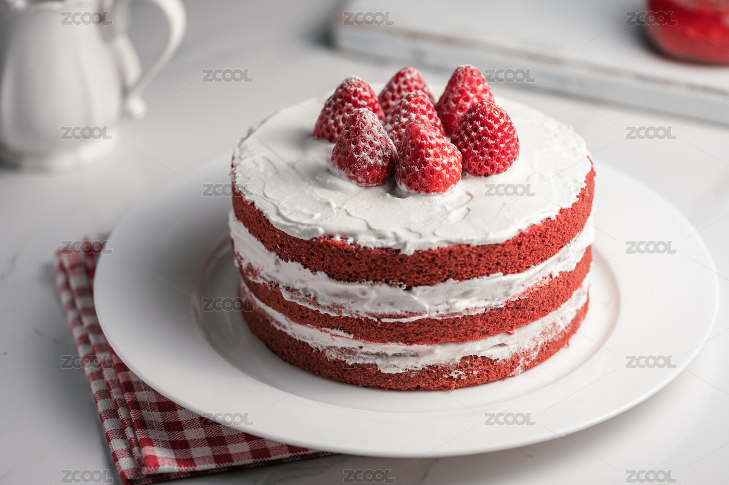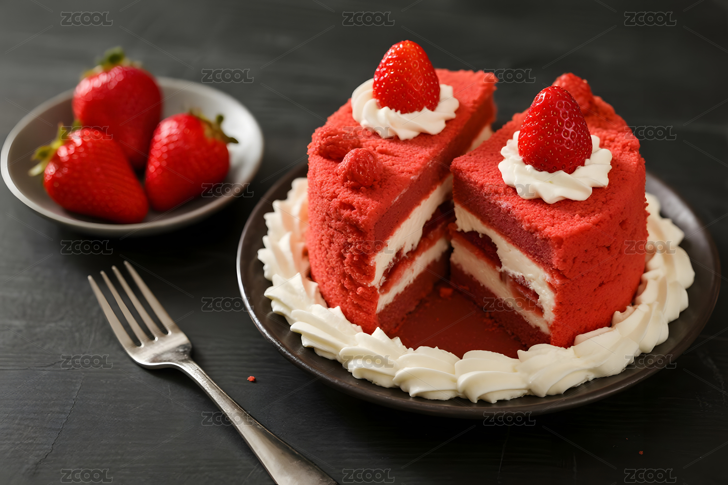 红丝绒蛋糕,草莓,奶油,蛋糕,甜点,美食,下午茶,甜品,精致,美味