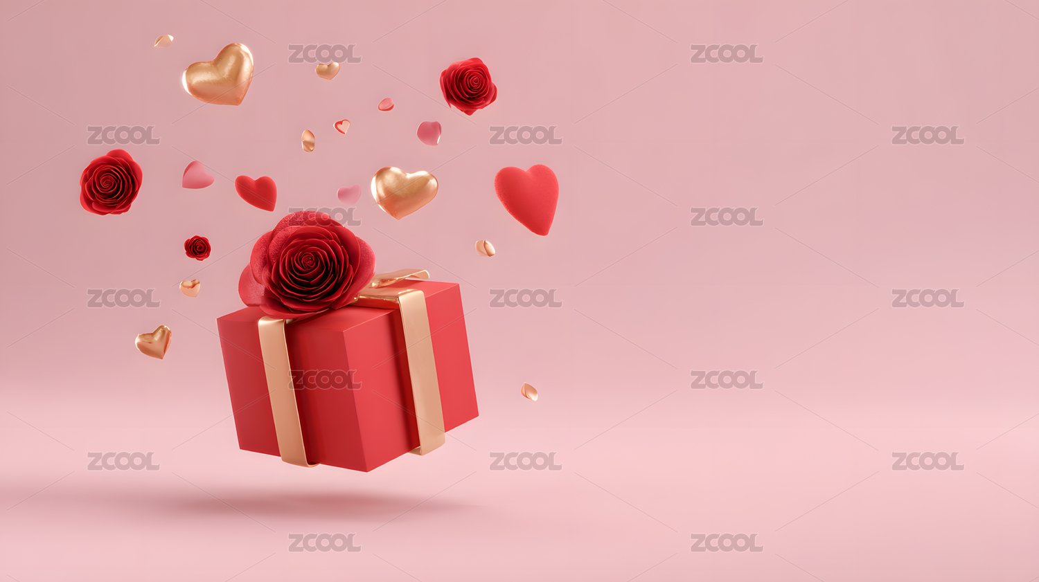 蓝色,金色,主体,心形,粉色,装饰,礼盒,玫瑰,丝带,情感