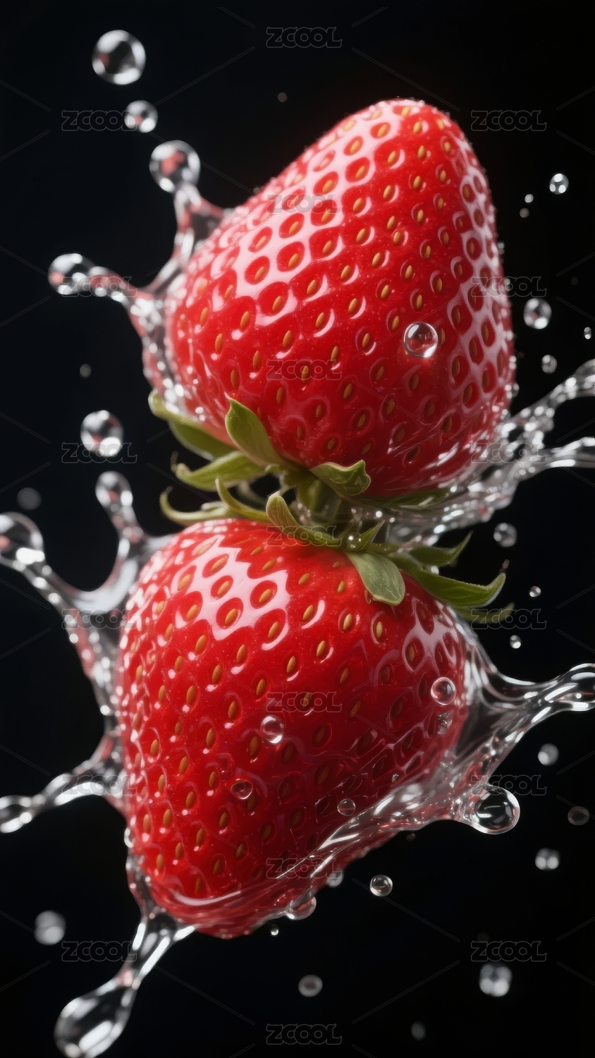 背景,水花,晶莹,动感,草莓,绿色,鲜红,清爽