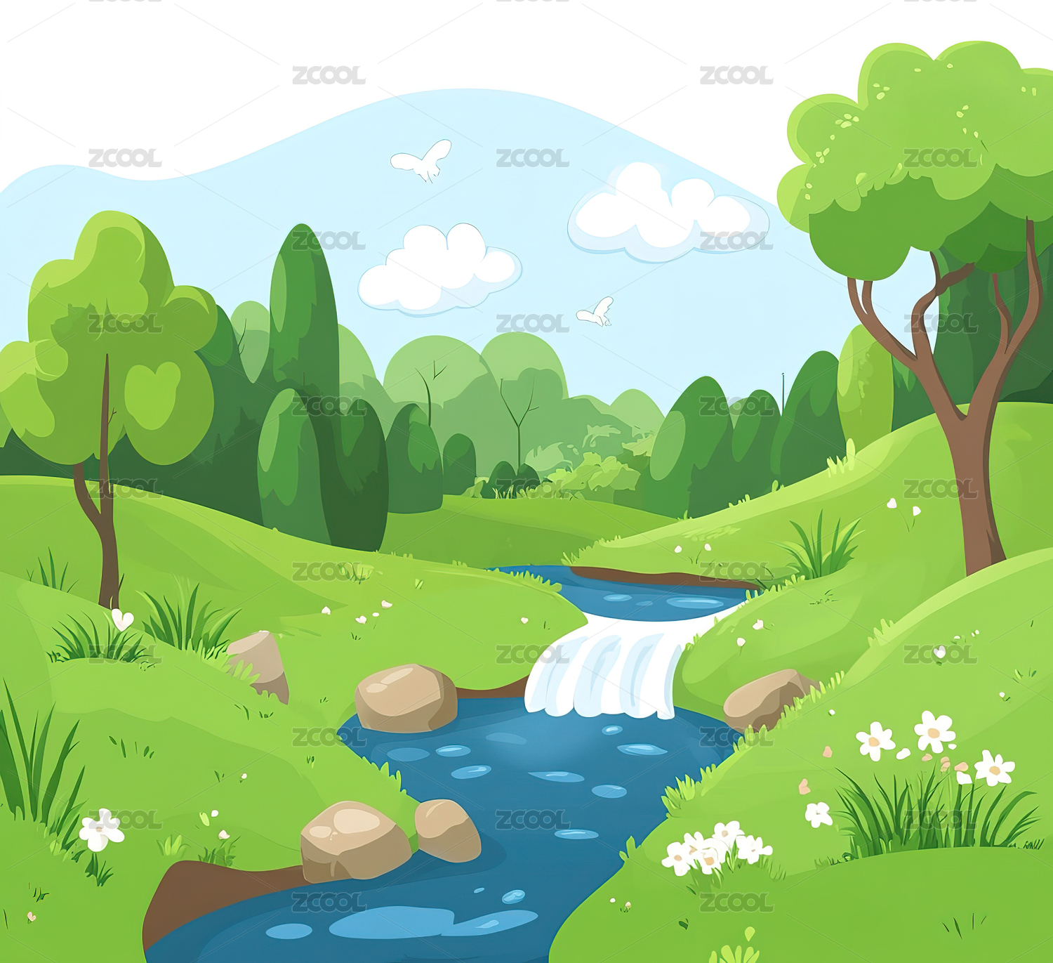 河谷手绘插图背景