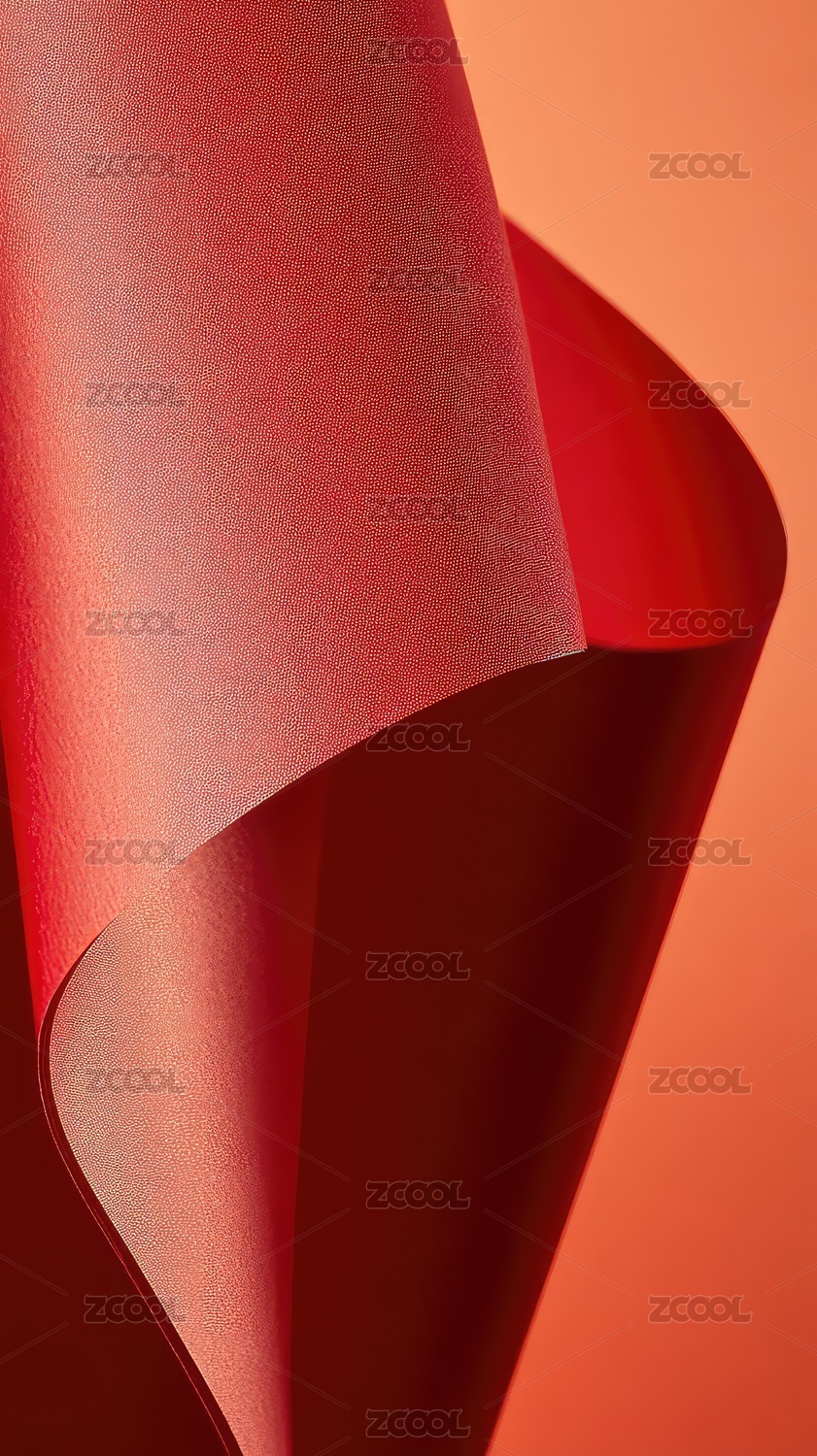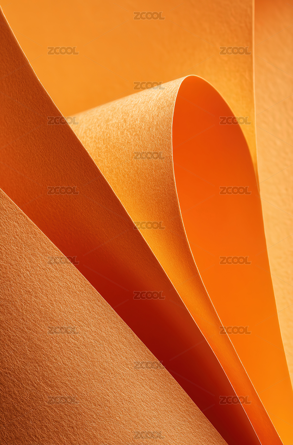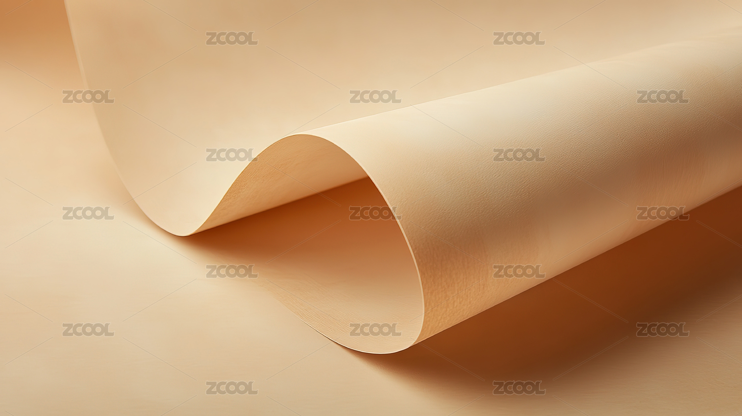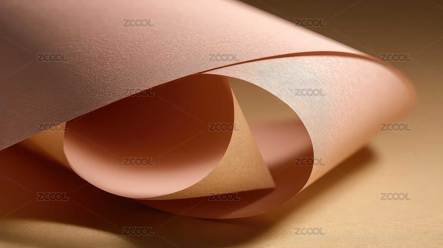 卷曲的纸张在光线下呈现出色彩和阴影变化