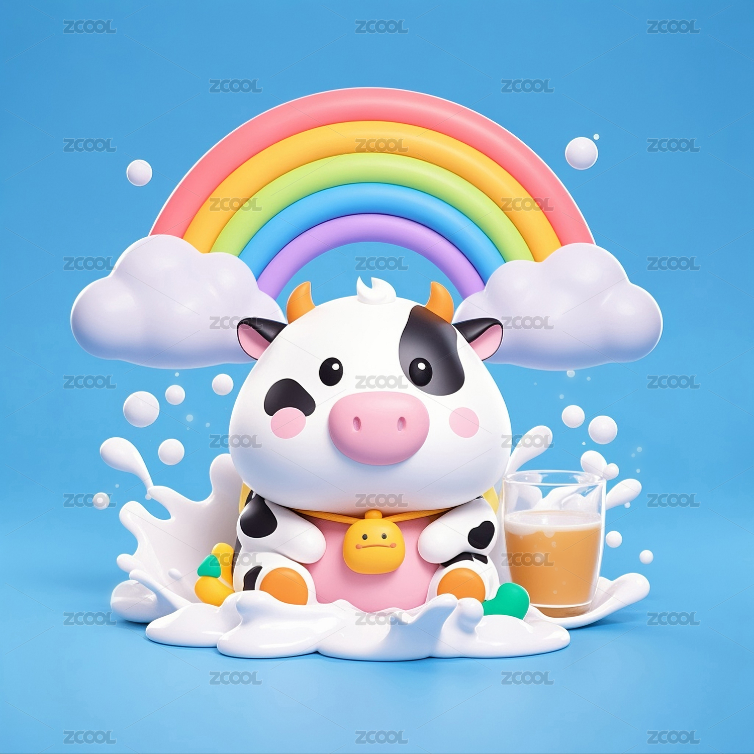 宝宝,可爱,萌萌哒,小奶牛,彩虹,云朵,泡泡