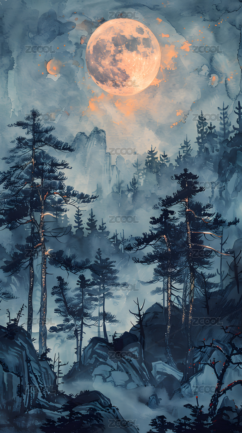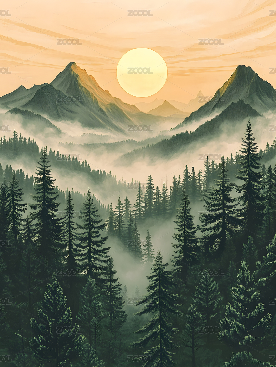 森林,树木,绘画,艺术,自然,创意,美丽,风景,宁静,景色