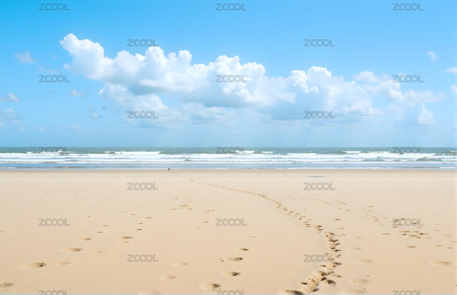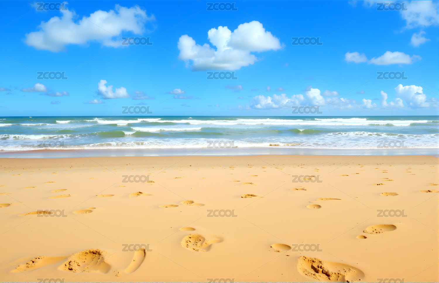 蓝天,白云,自然,风景,晴朗,阳光,海滩,海浪,脚印,沙滩