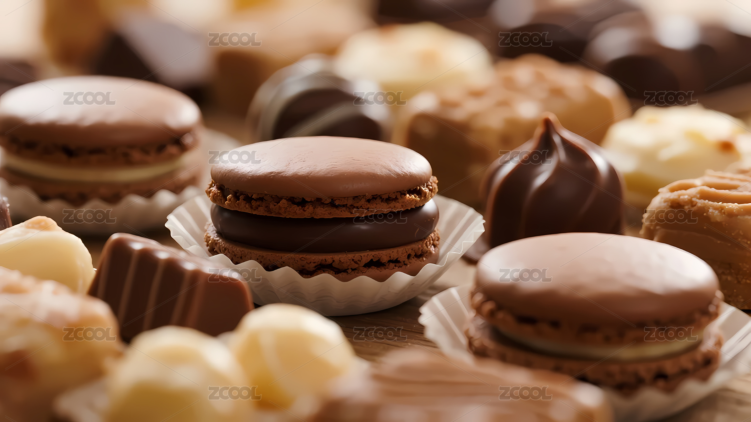 黑色,氛围,色调,主体,白色,马卡龙,巧克力,深棕色,浓郁,甜点