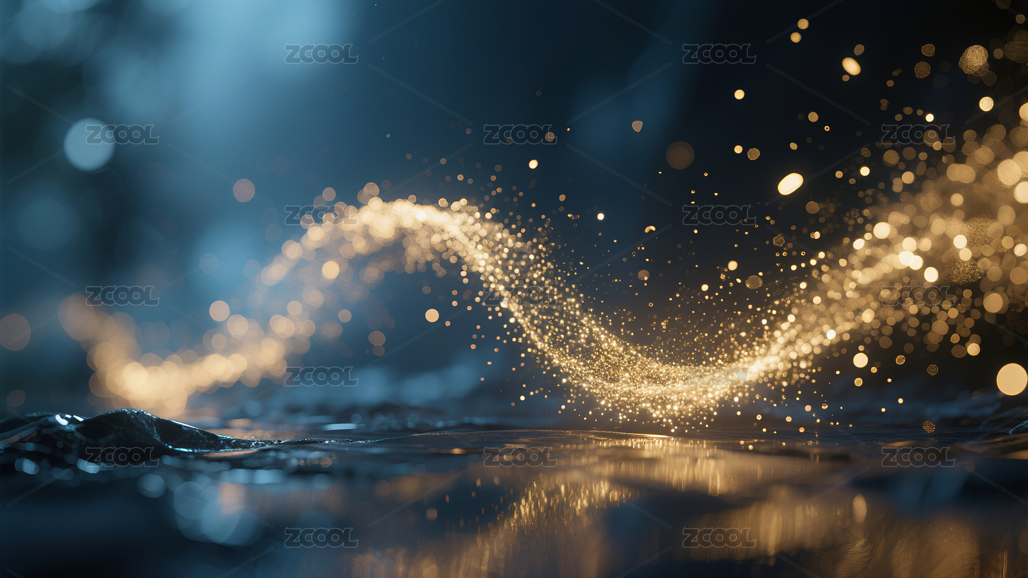 金色光点在深蓝波浪上闪烁