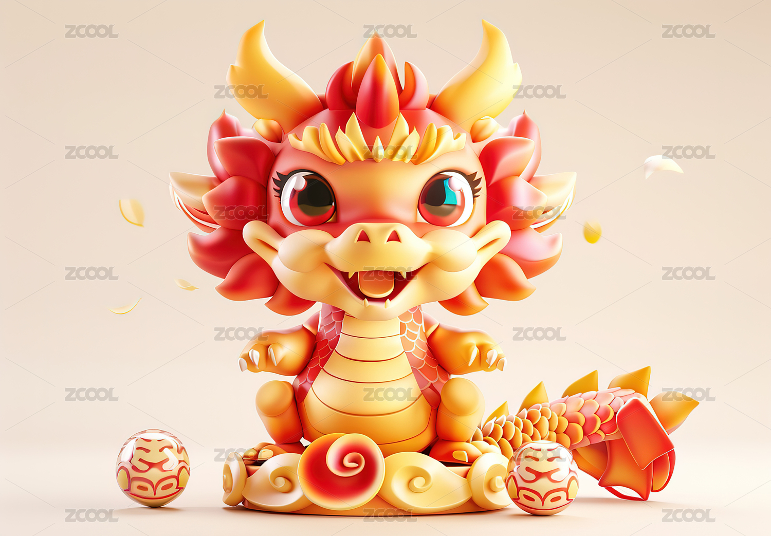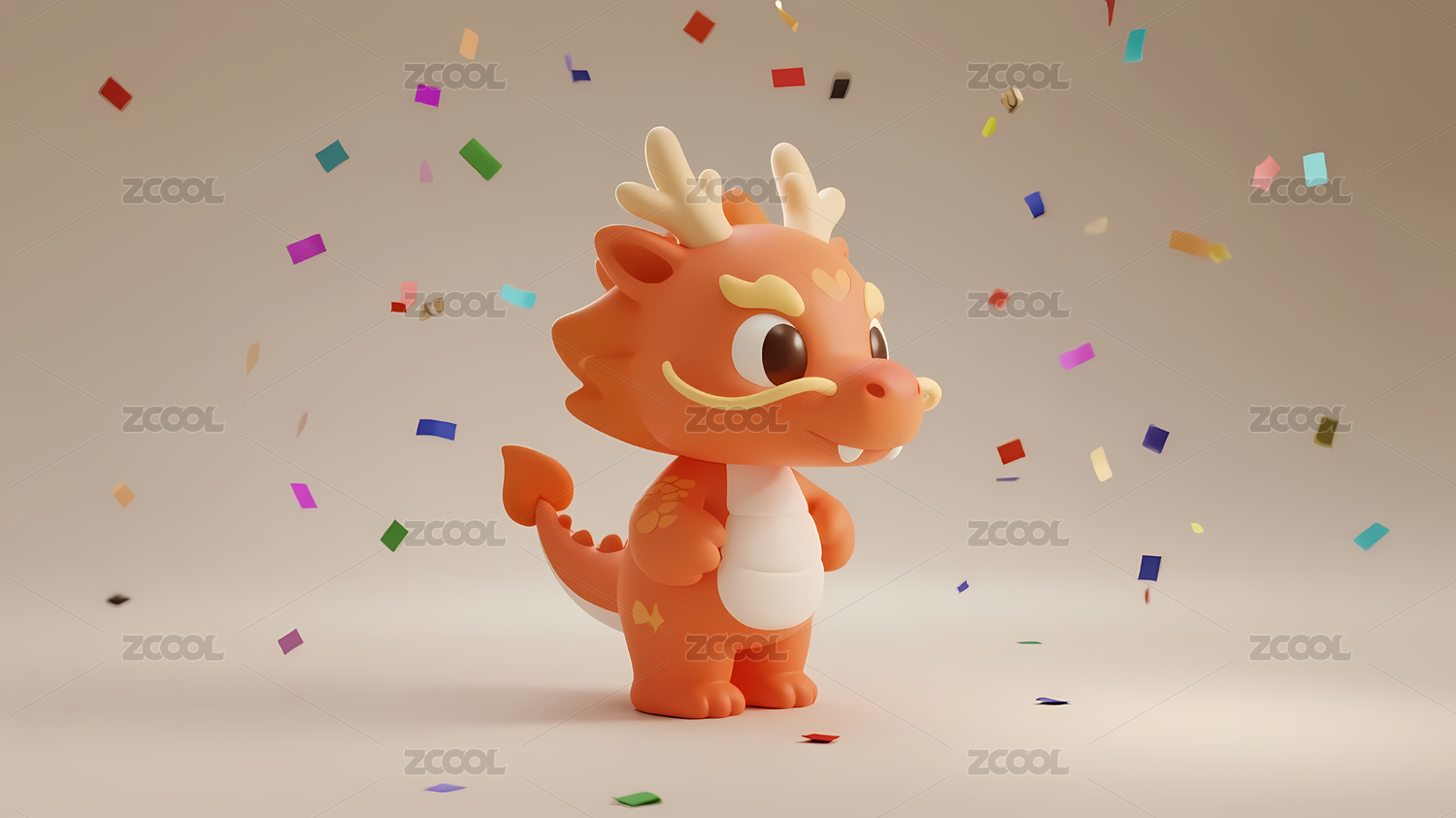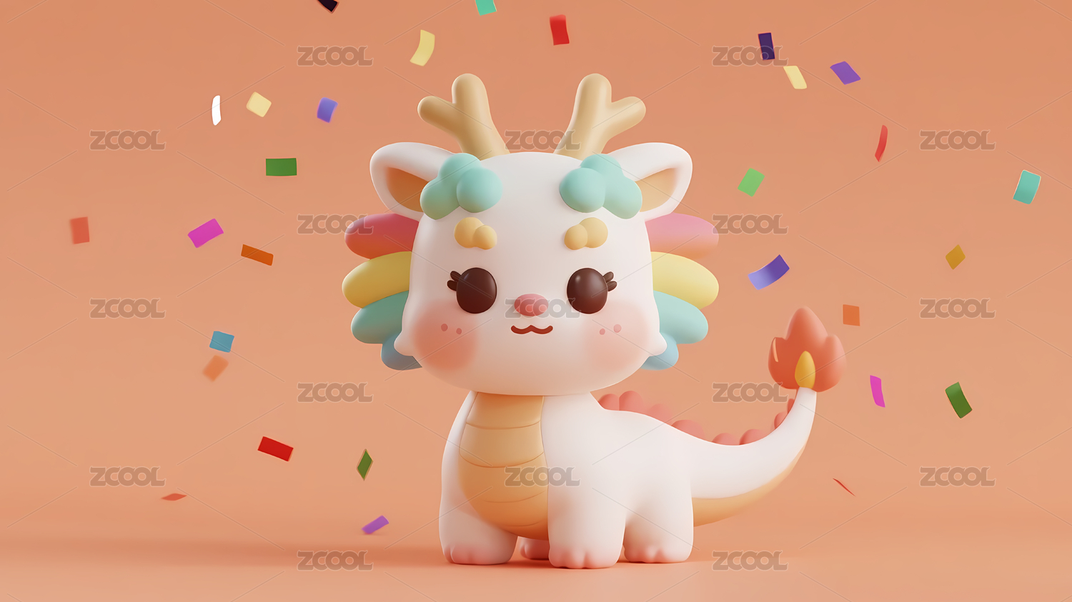 装饰,白色,喜庆,粉色,糖果,橙色,动物,卡通,龙,纸屑