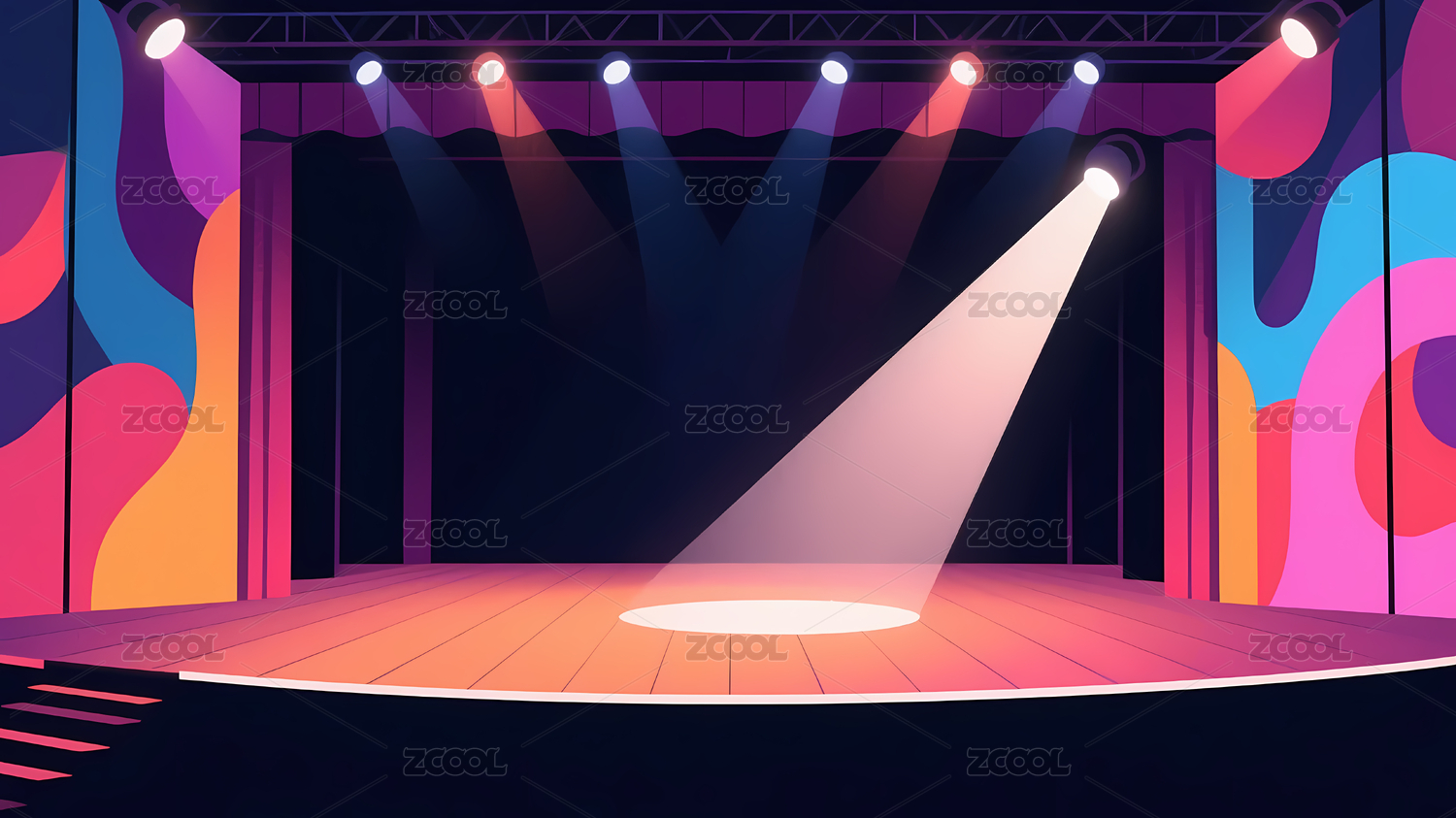 深色,灯光,主体,木质,紫色,舞台,幕布,地板,灯柱,庄重