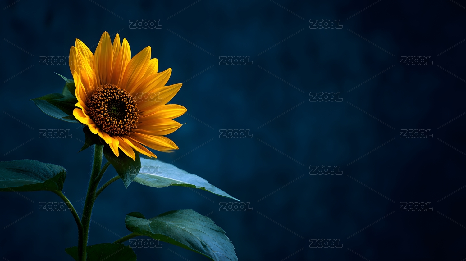 向日葵深蓝背景静谧绽放