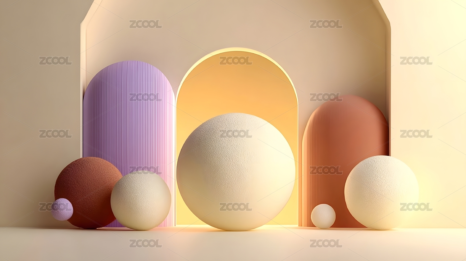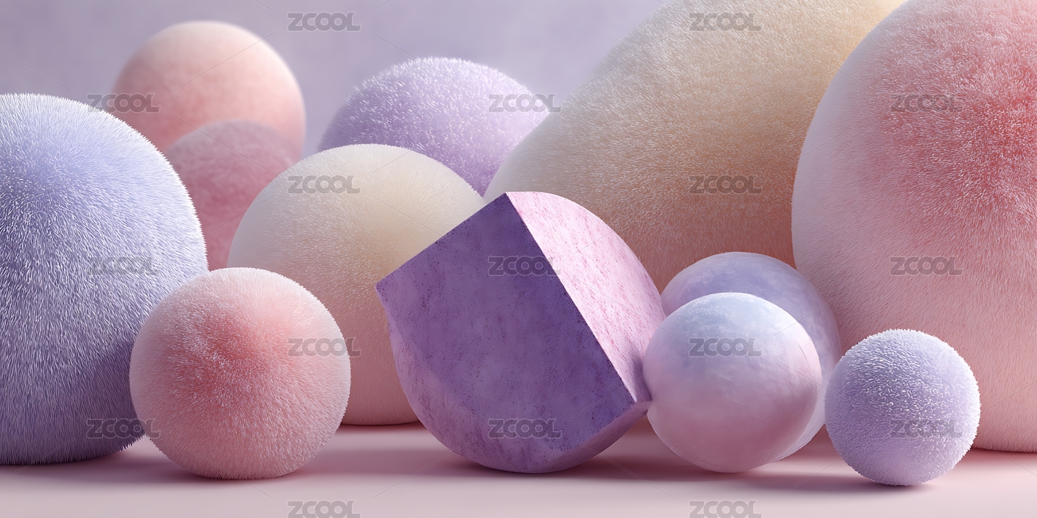紫色背景下彩球几何体堆叠