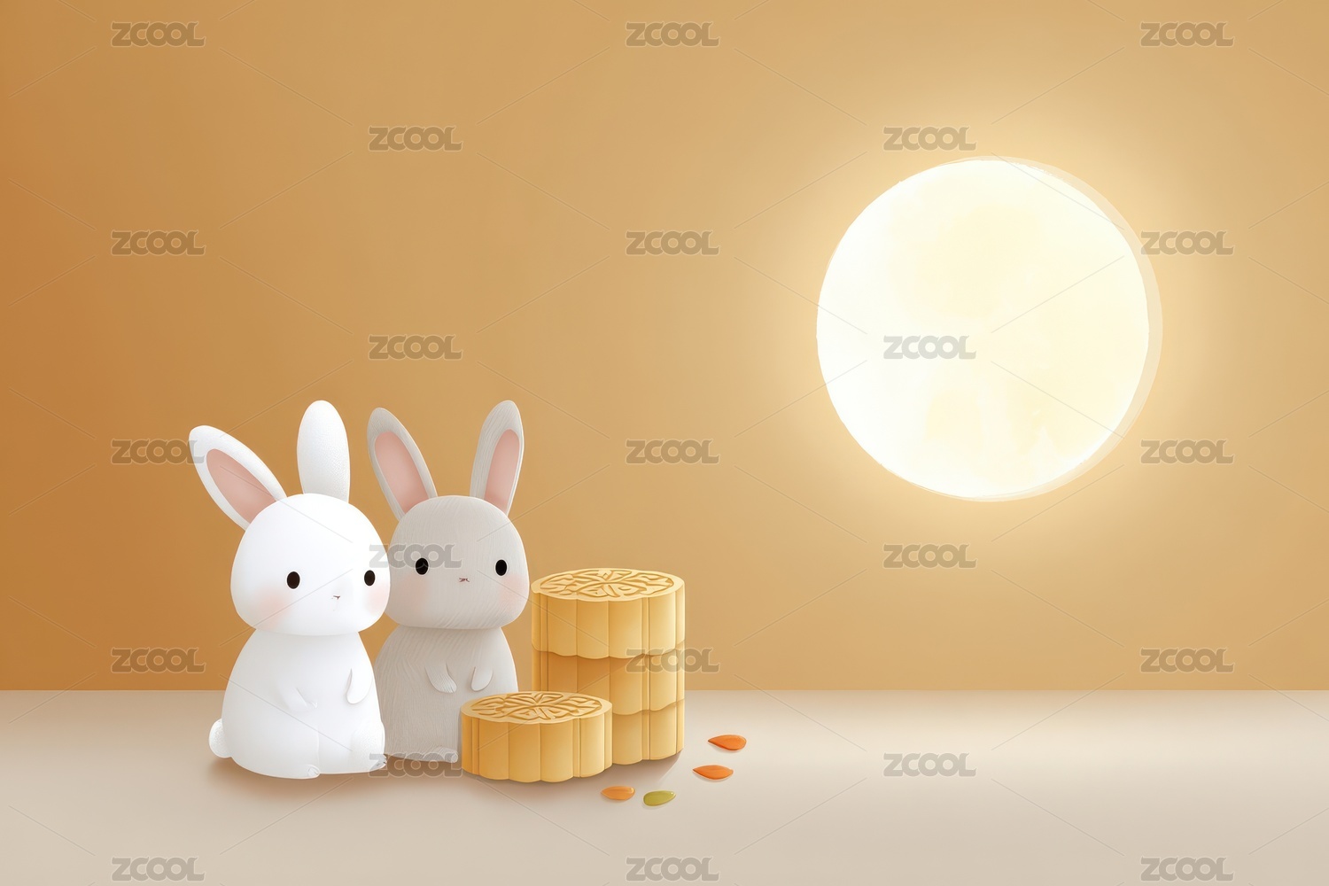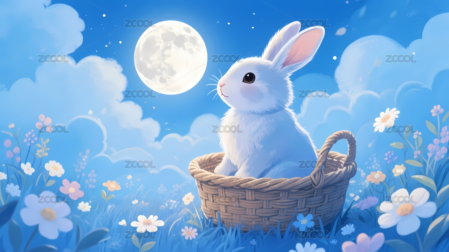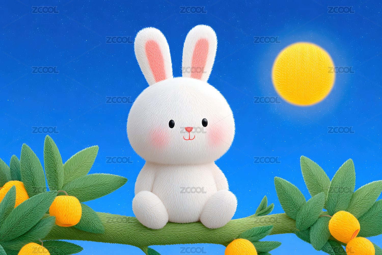 绿色,背景,壁纸,蓝色,3D,卡通,节日,可爱,中秋,兔子