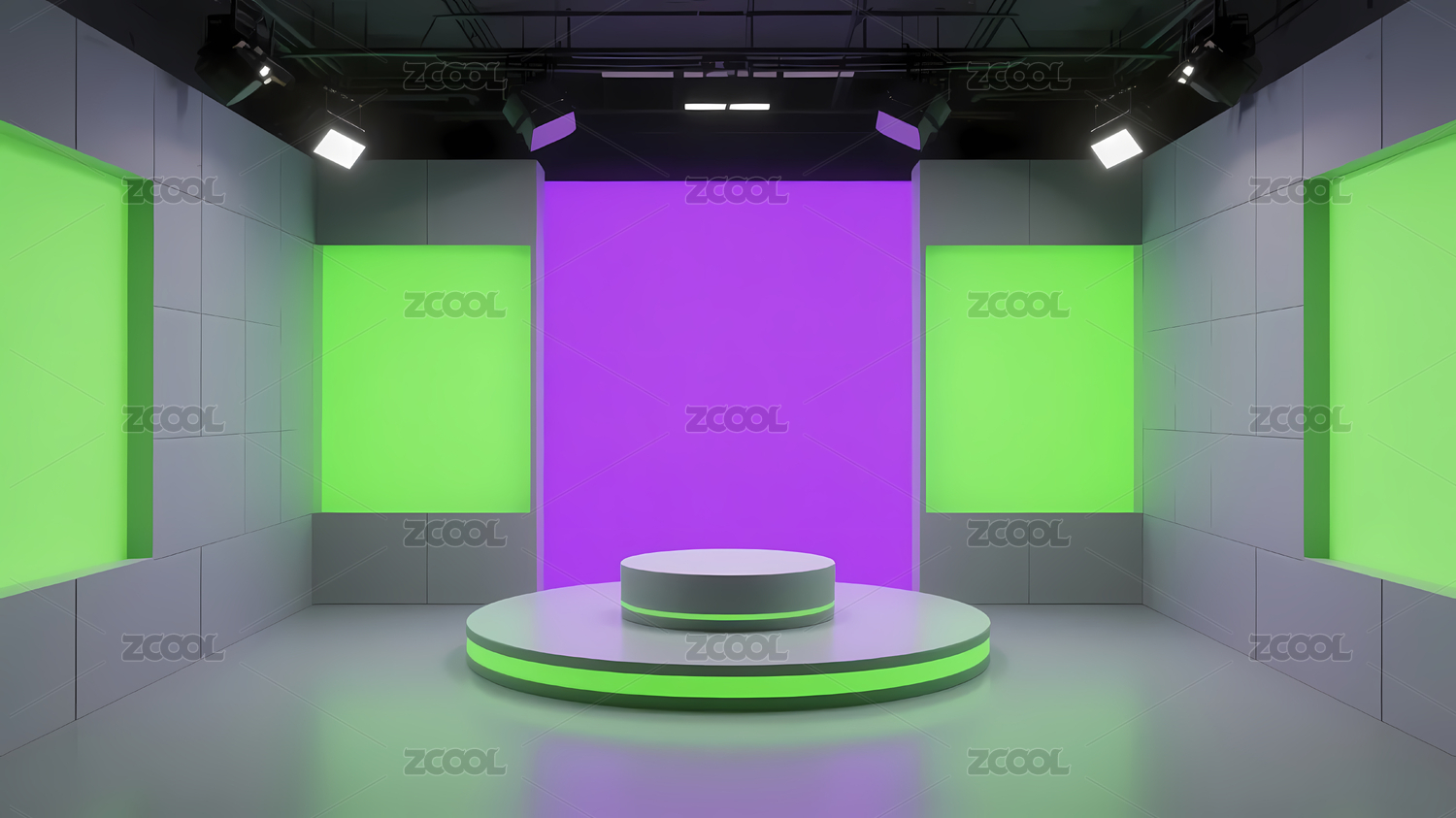 科技,背景,绿色,圆形,紫色,现代,灯光,平台,屏幕,墙面