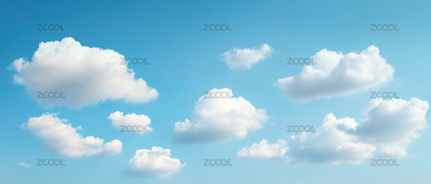 晴朗蓝色天空漂浮的白云云朵清新空气