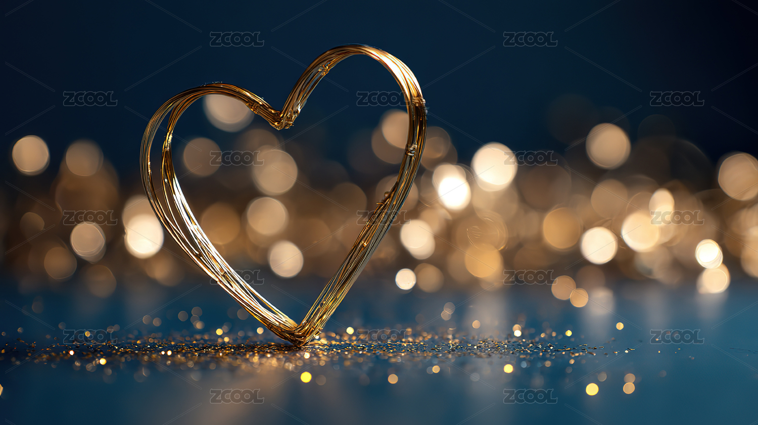 金色,光斑,心形,闪耀,深蓝,浪漫,视觉,装饰,物体,梦幻