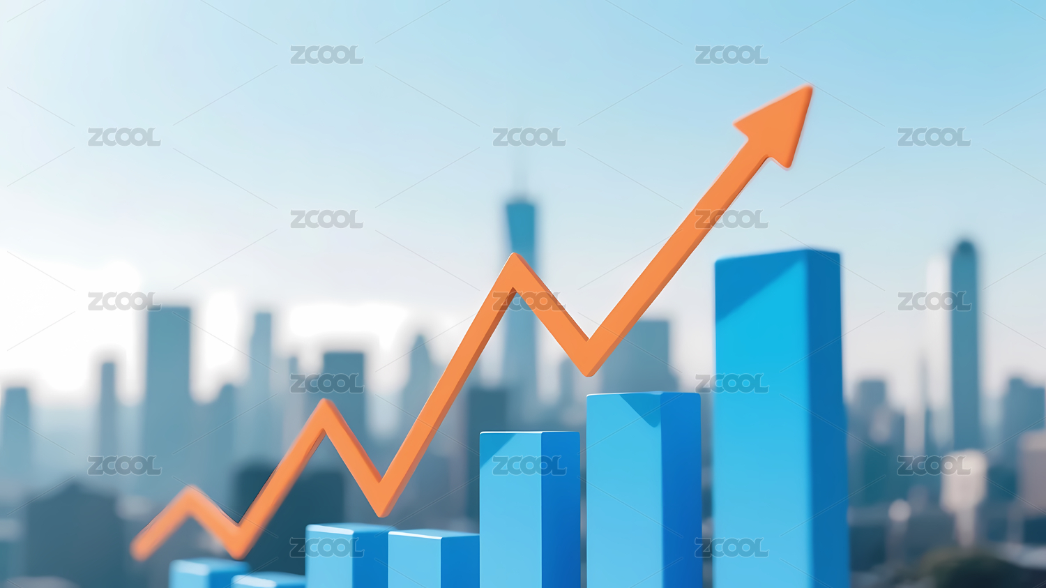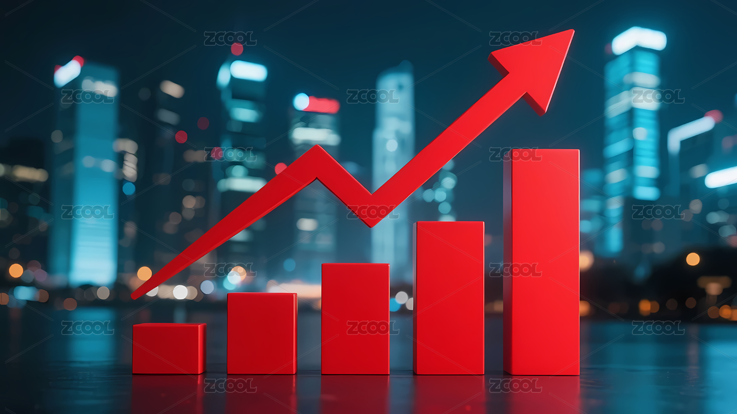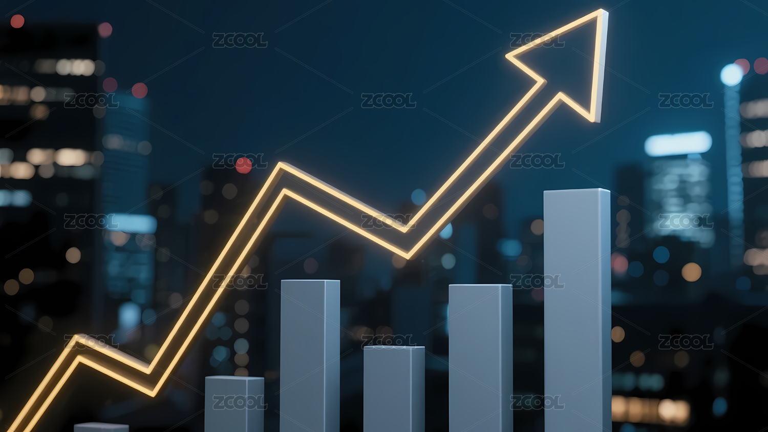 蓝色,黑色,橙色,图表,箭头,城市,天际线,夜晚,上升,趋势