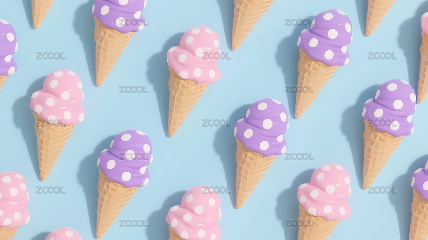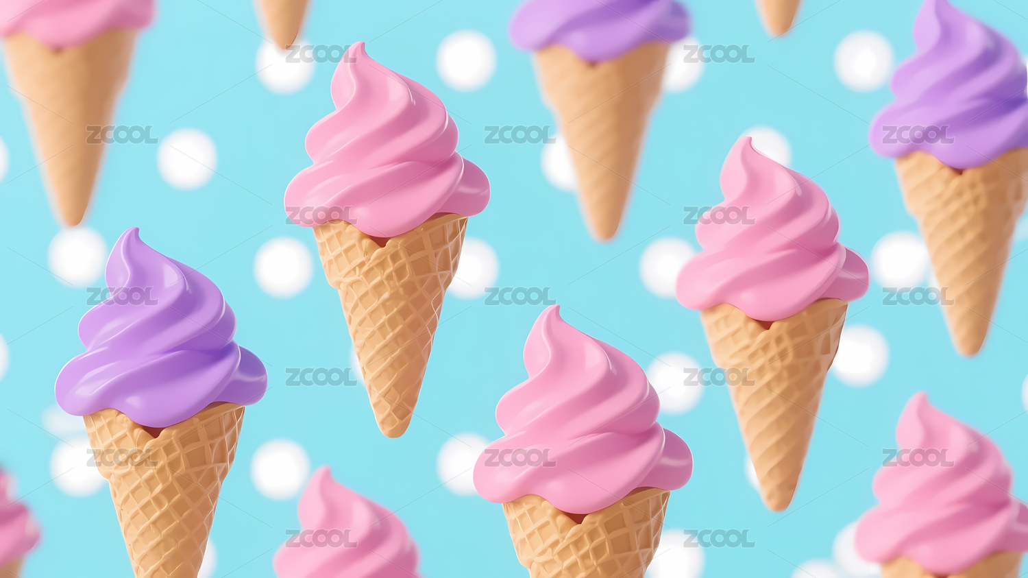 紫色粉色冰淇淋与波点背景