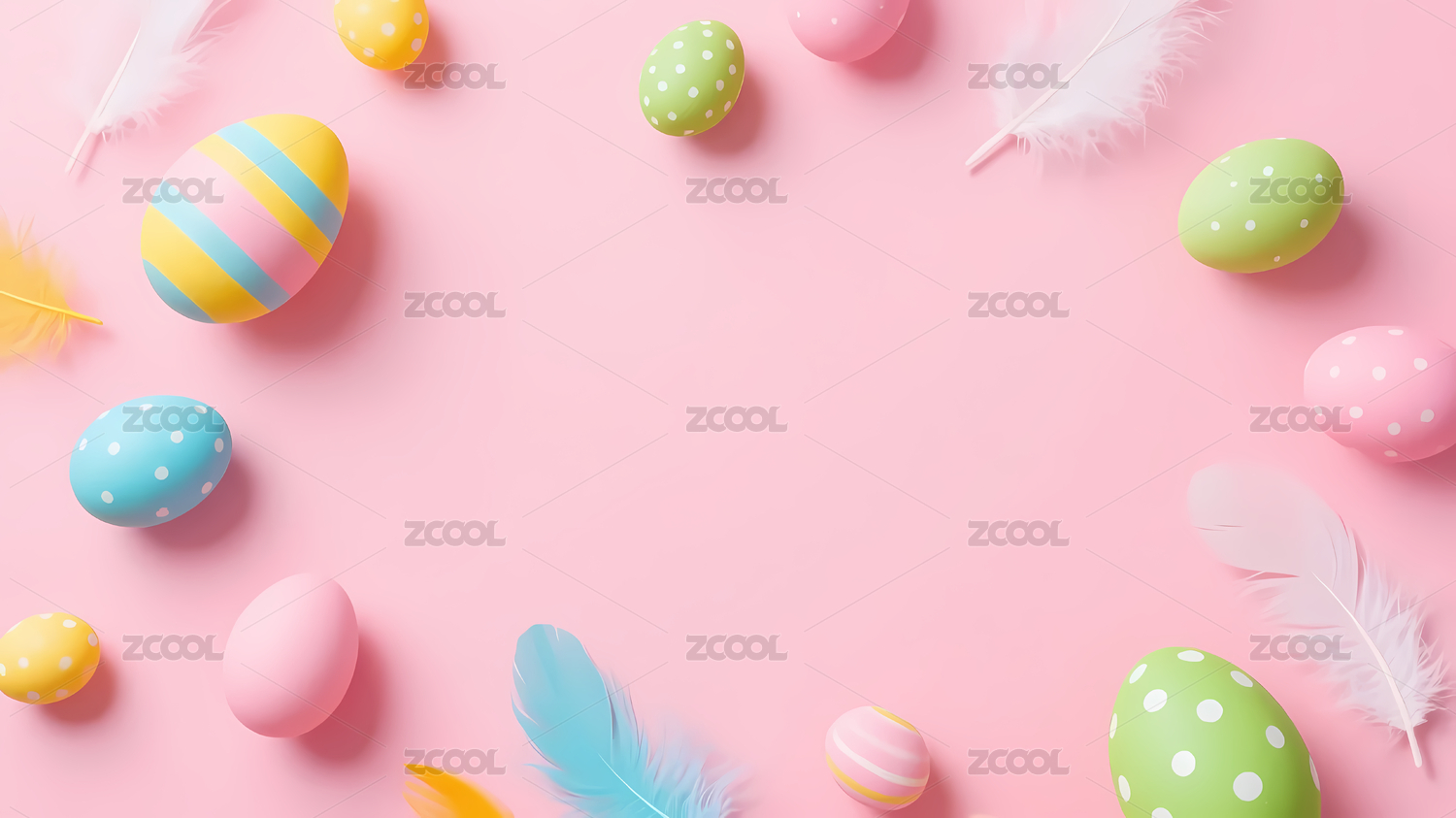 复活节彩蛋与羽毛的场景插图