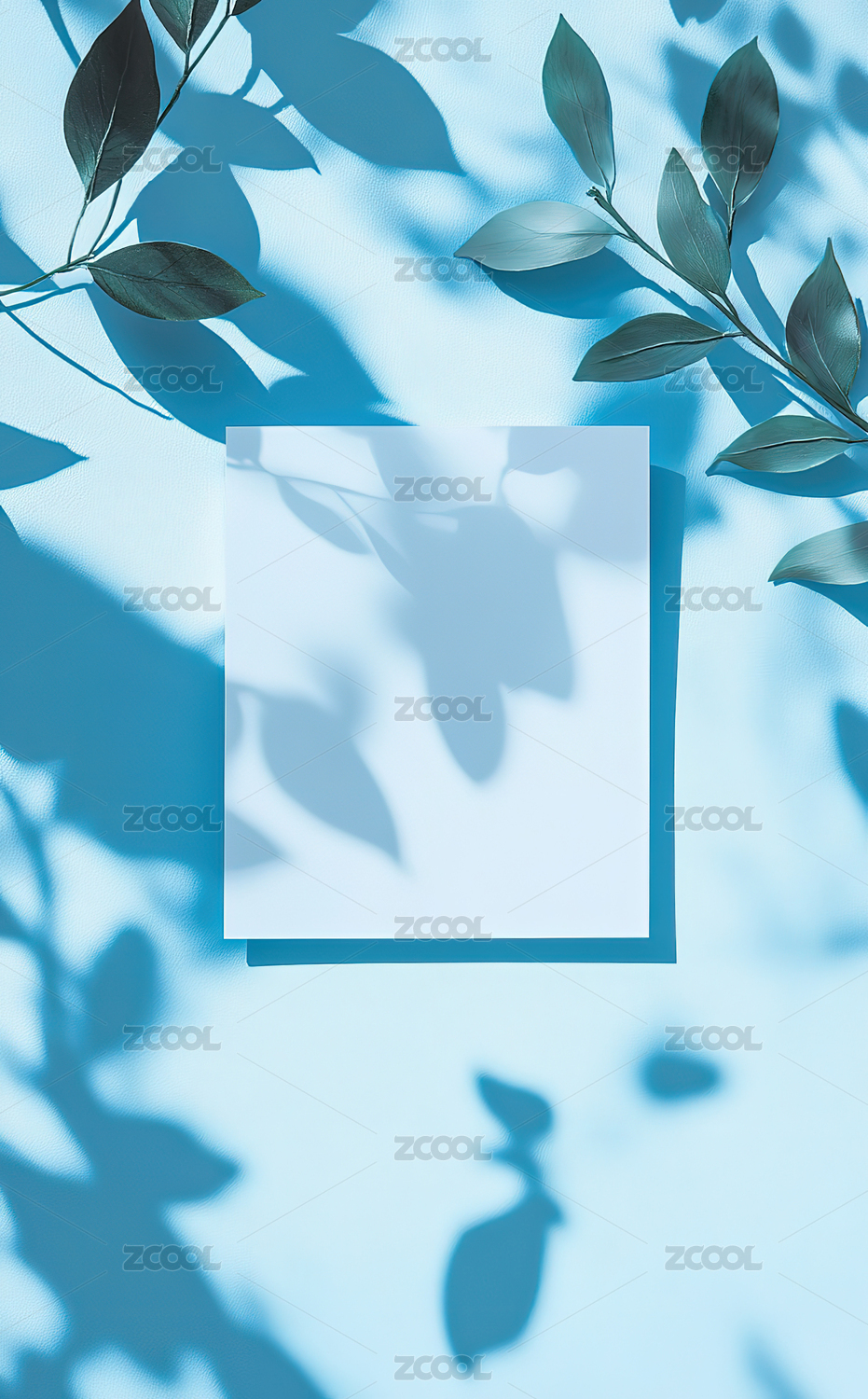 蓝色底植物装饰的模板