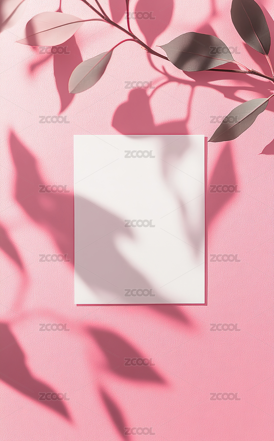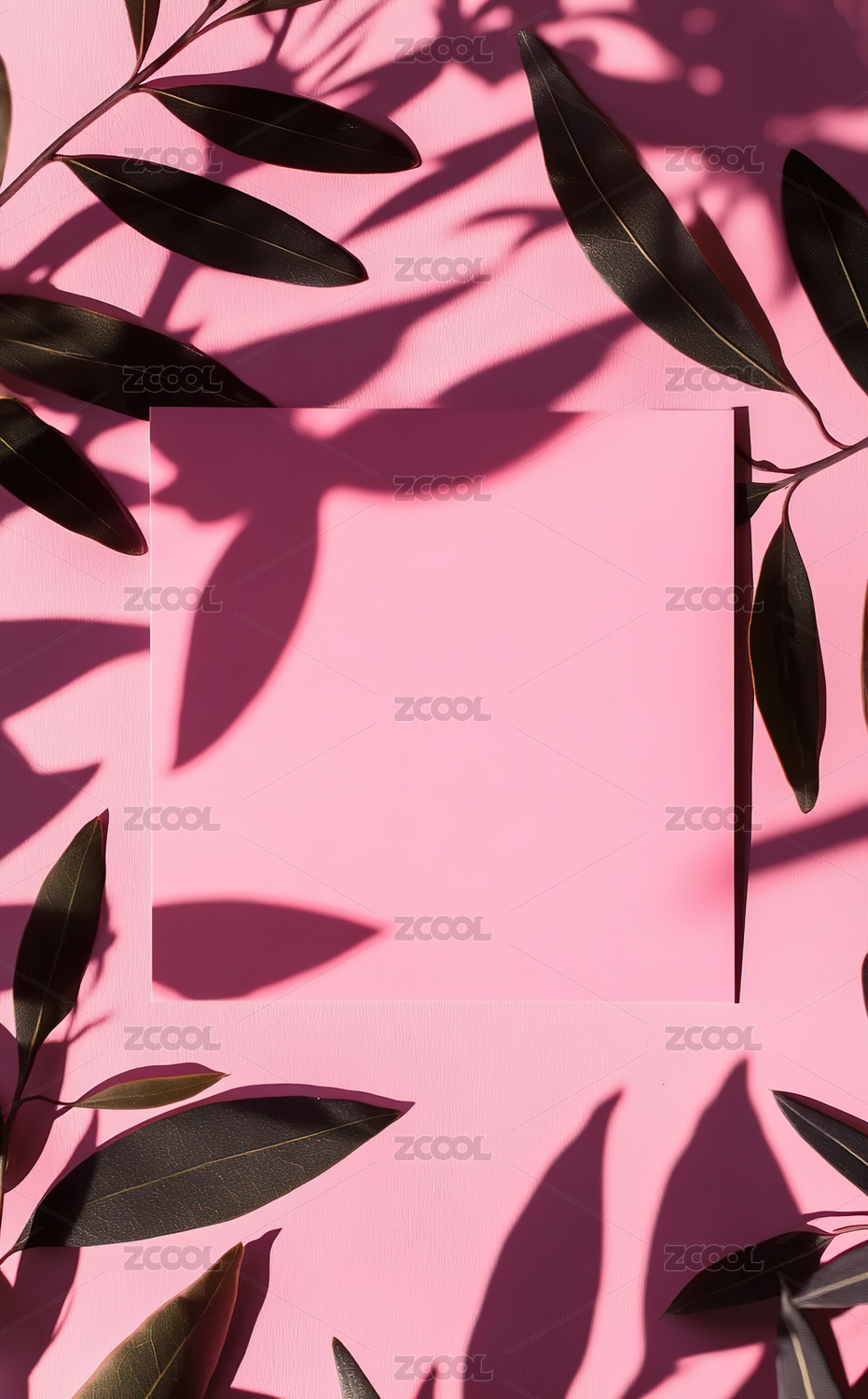 正上方是粉红色背景的树叶和树叶