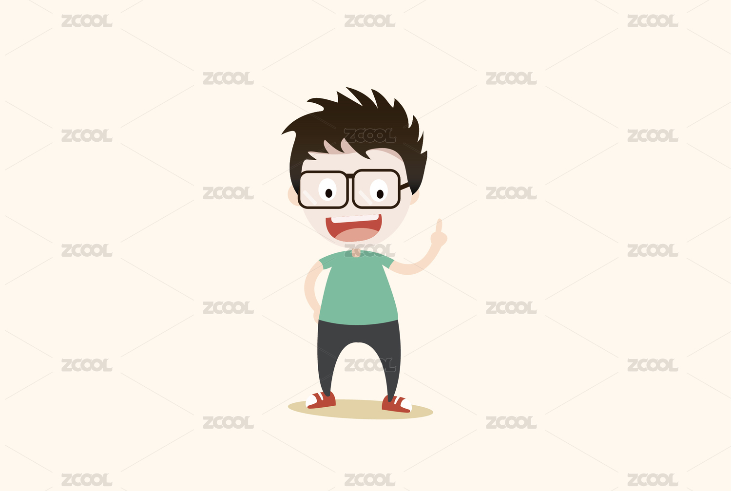 戴眼镜的开心男孩卡通人物