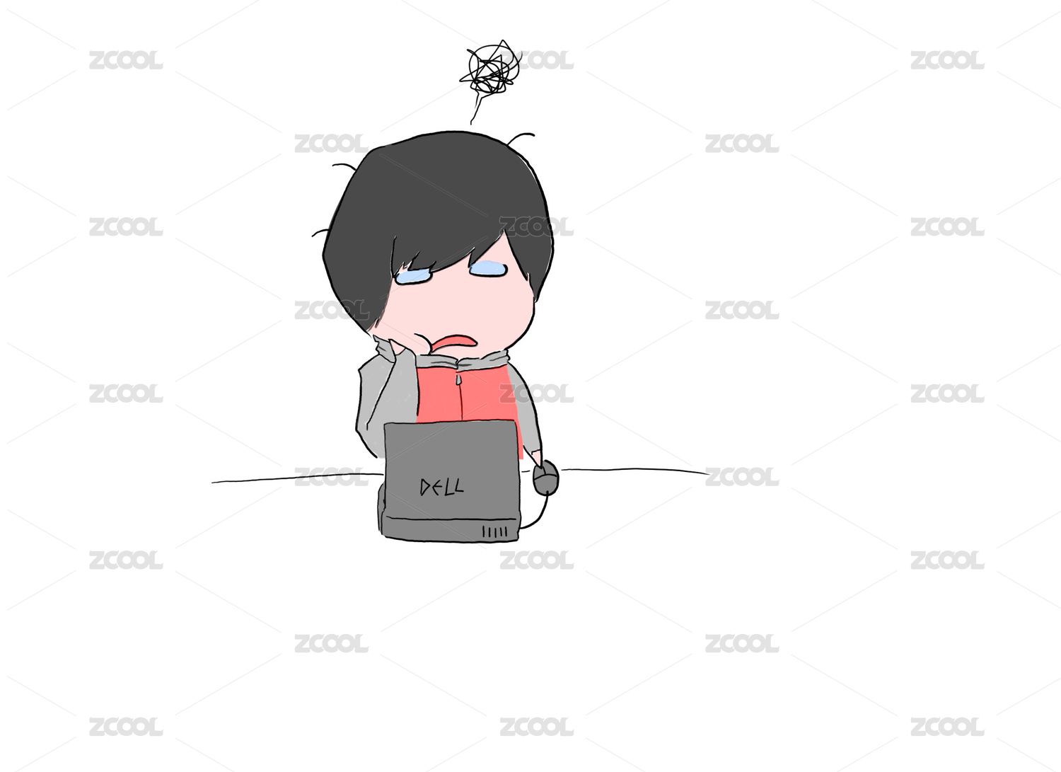 对着电脑握着鼠标一筹莫展