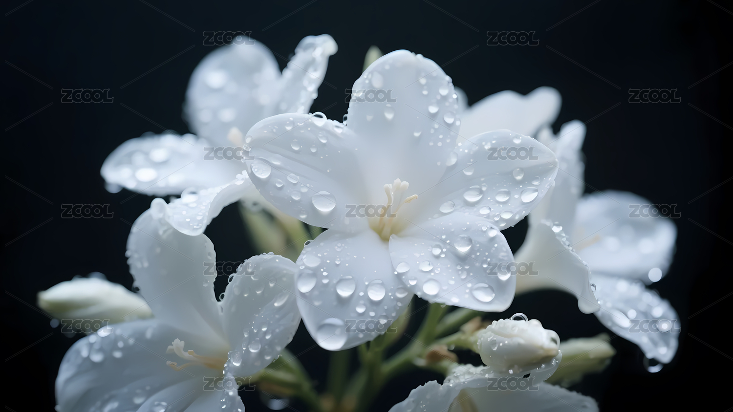 白色,深色,花瓣,模糊,主体,花朵,水珠,晶莹,纯洁,清新