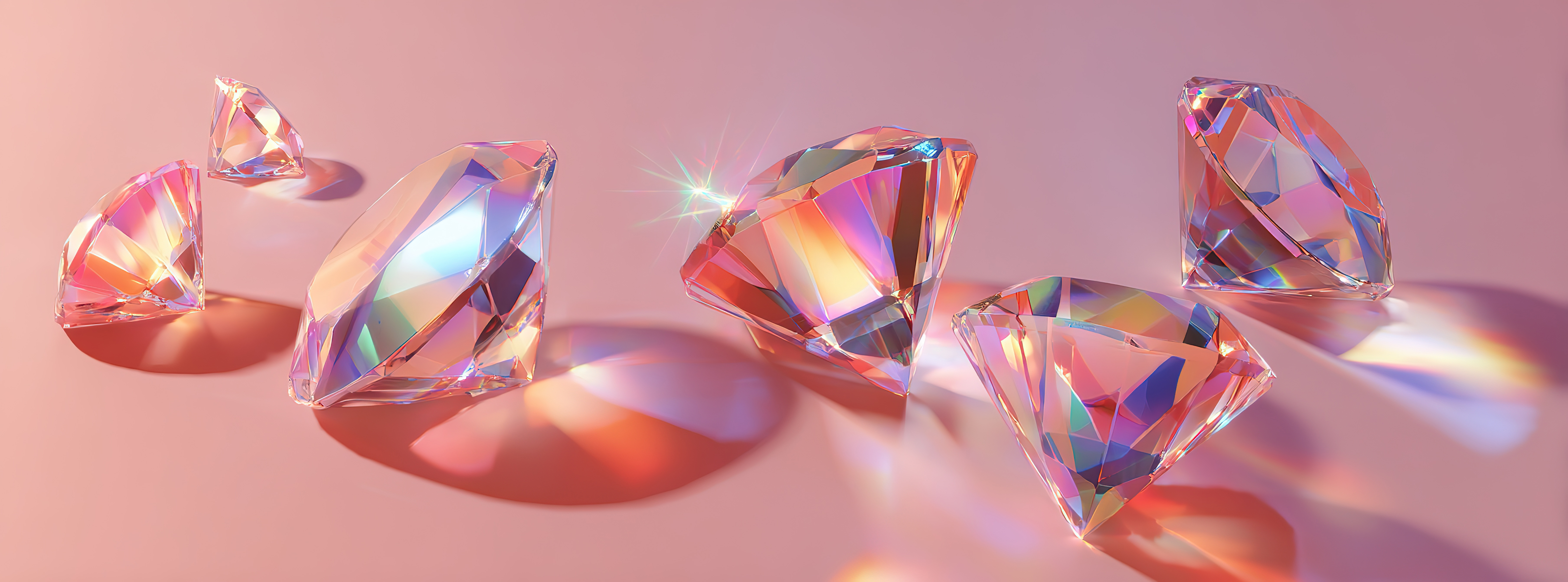白底时尚潮流晶莹透亮钻石宝石3D立体插画