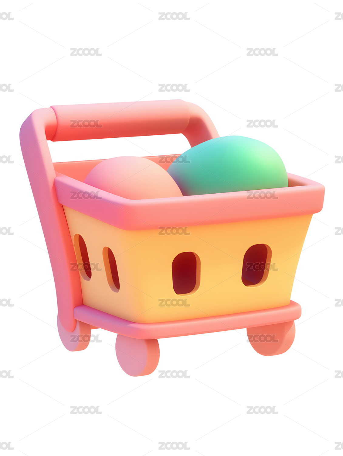粉色,3D,卡通,可爱,情人节,黄色,红色,绿色,爱心,购物篮