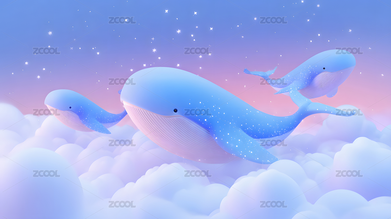 粉色,清新,背景,3D,卡通,可爱,梦幻,蓝色,抽象,鲸鱼