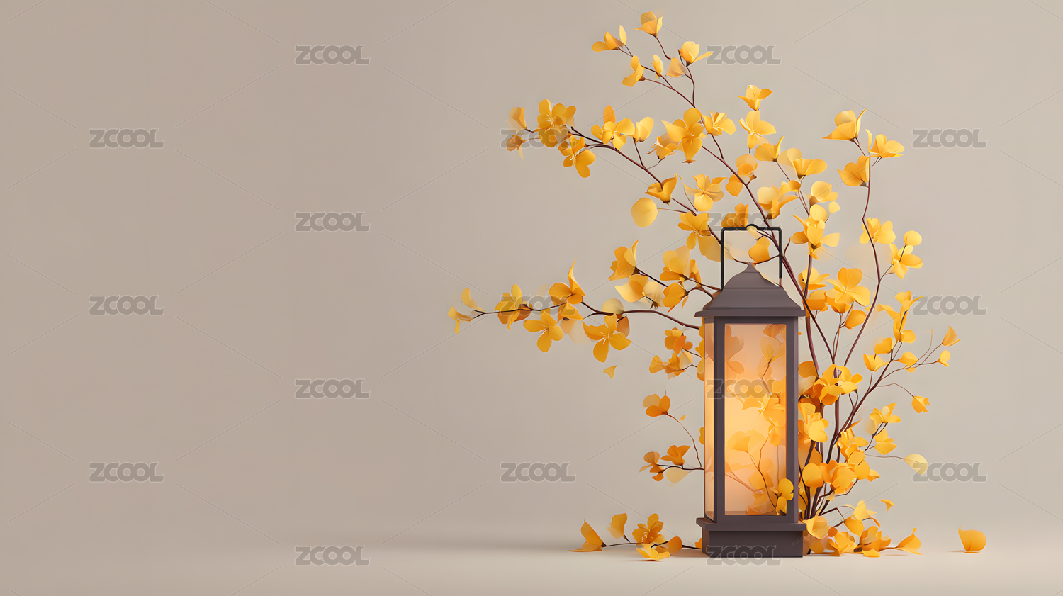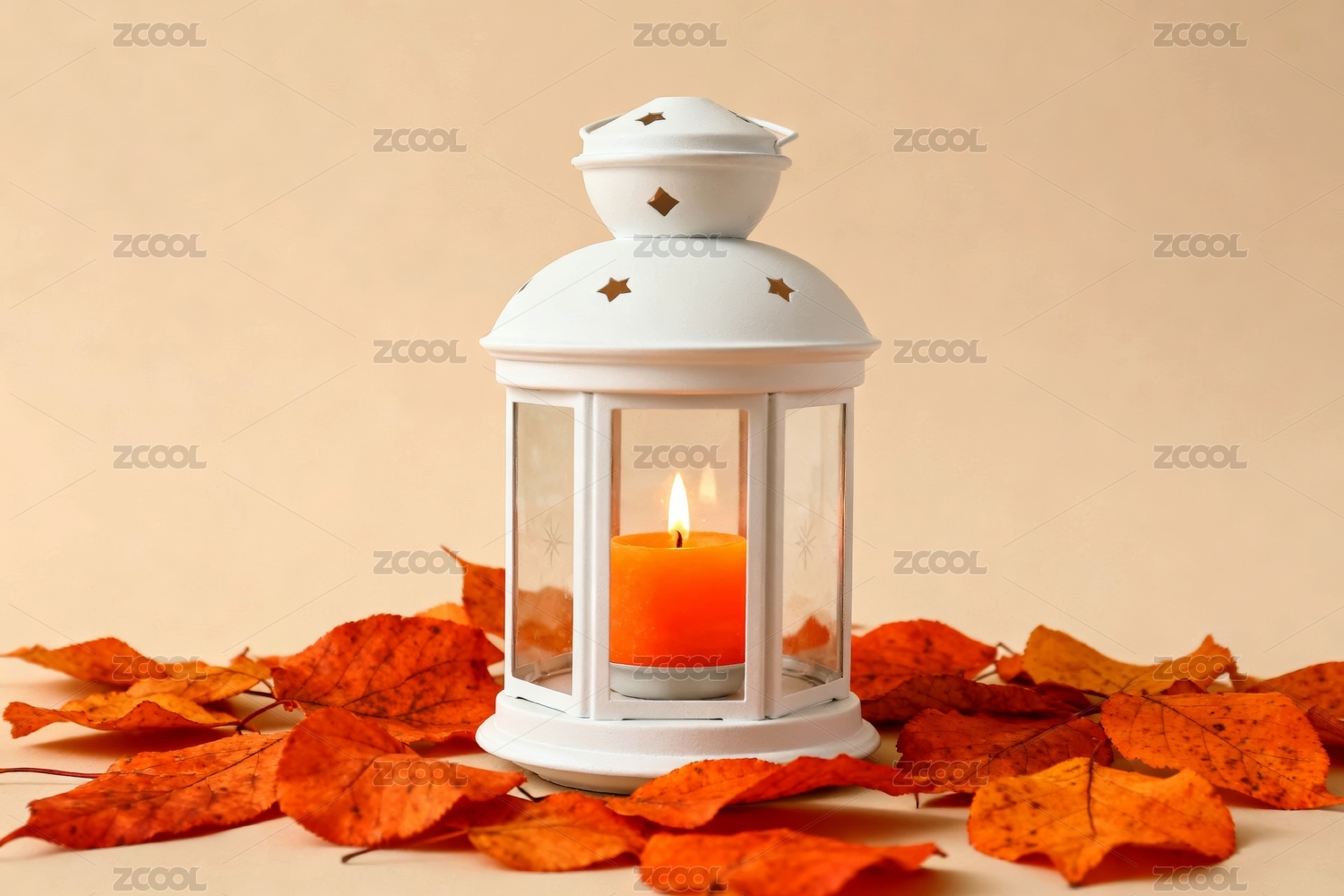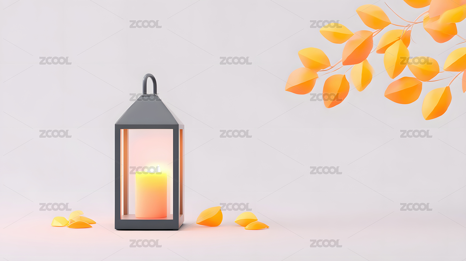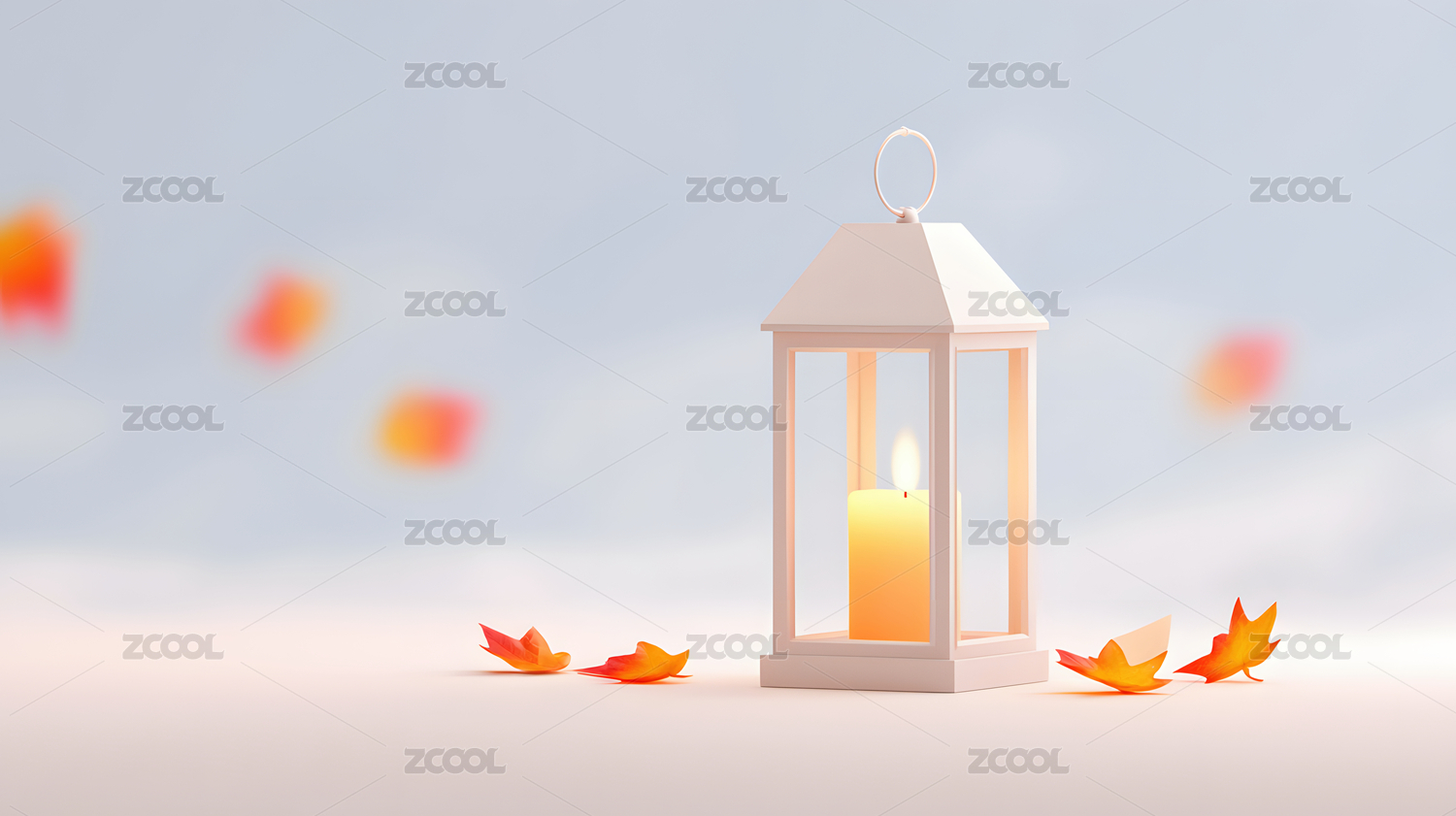 秋叶,灯笼,提灯,暖光,蜡烛,背景,秋天,氛围,简约,温馨