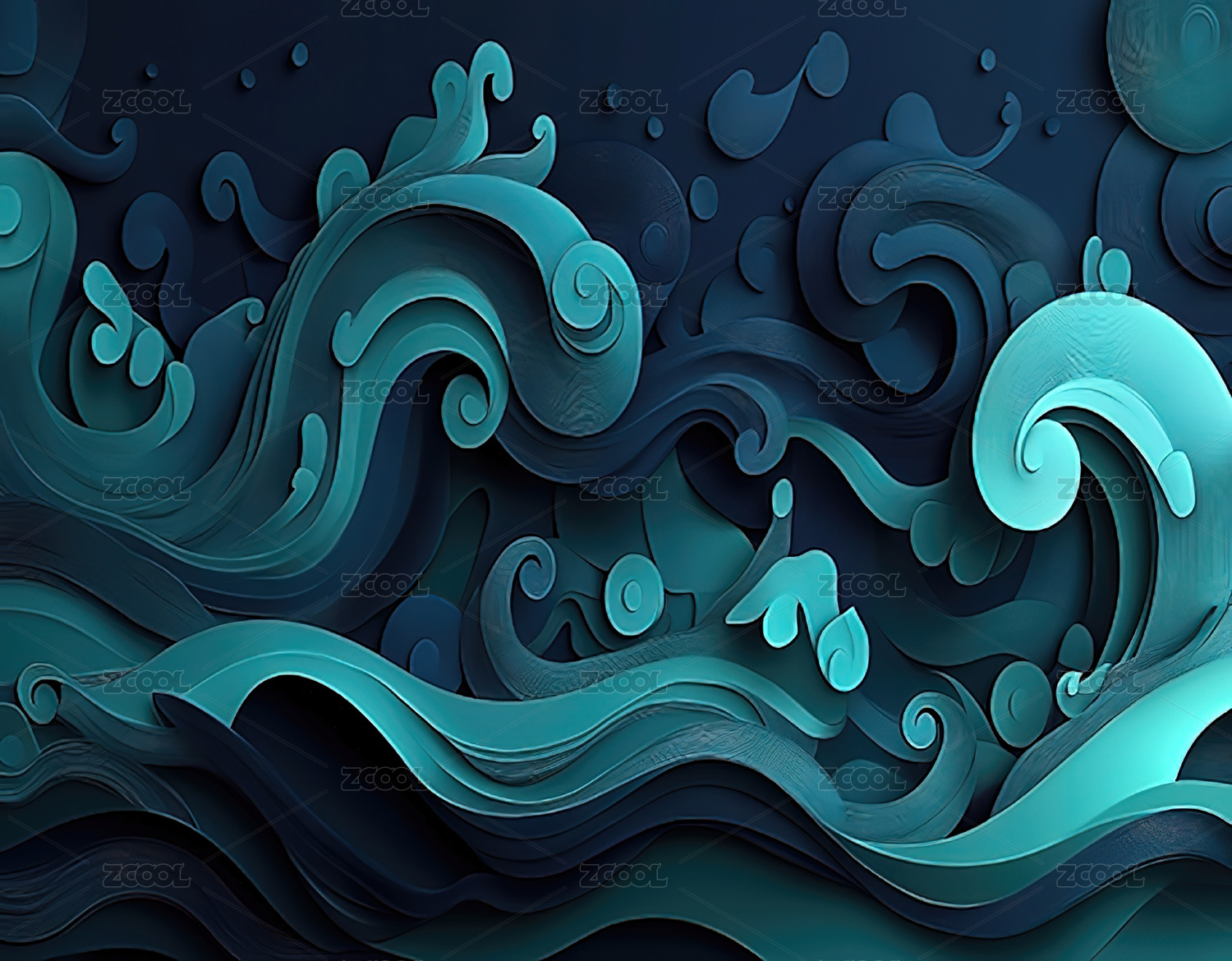数码蓝绿色水波纹图案纹理抽象图形海报背景