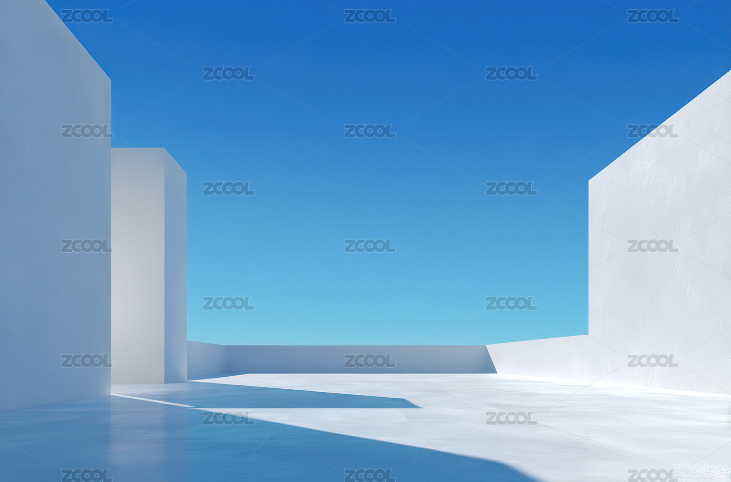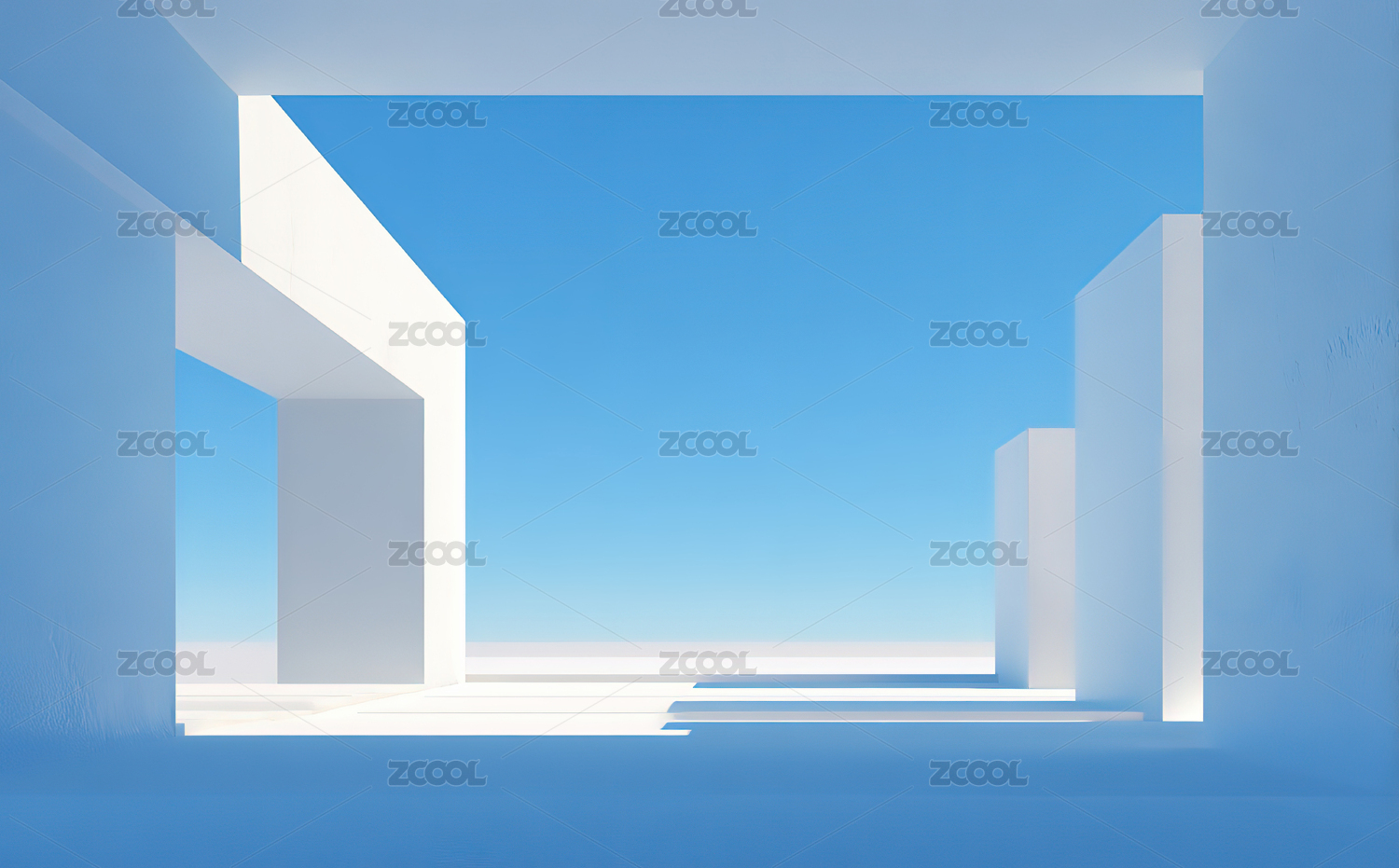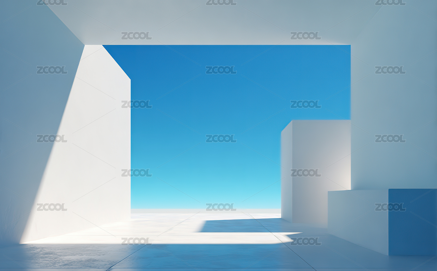 极简几何空间与蓝天