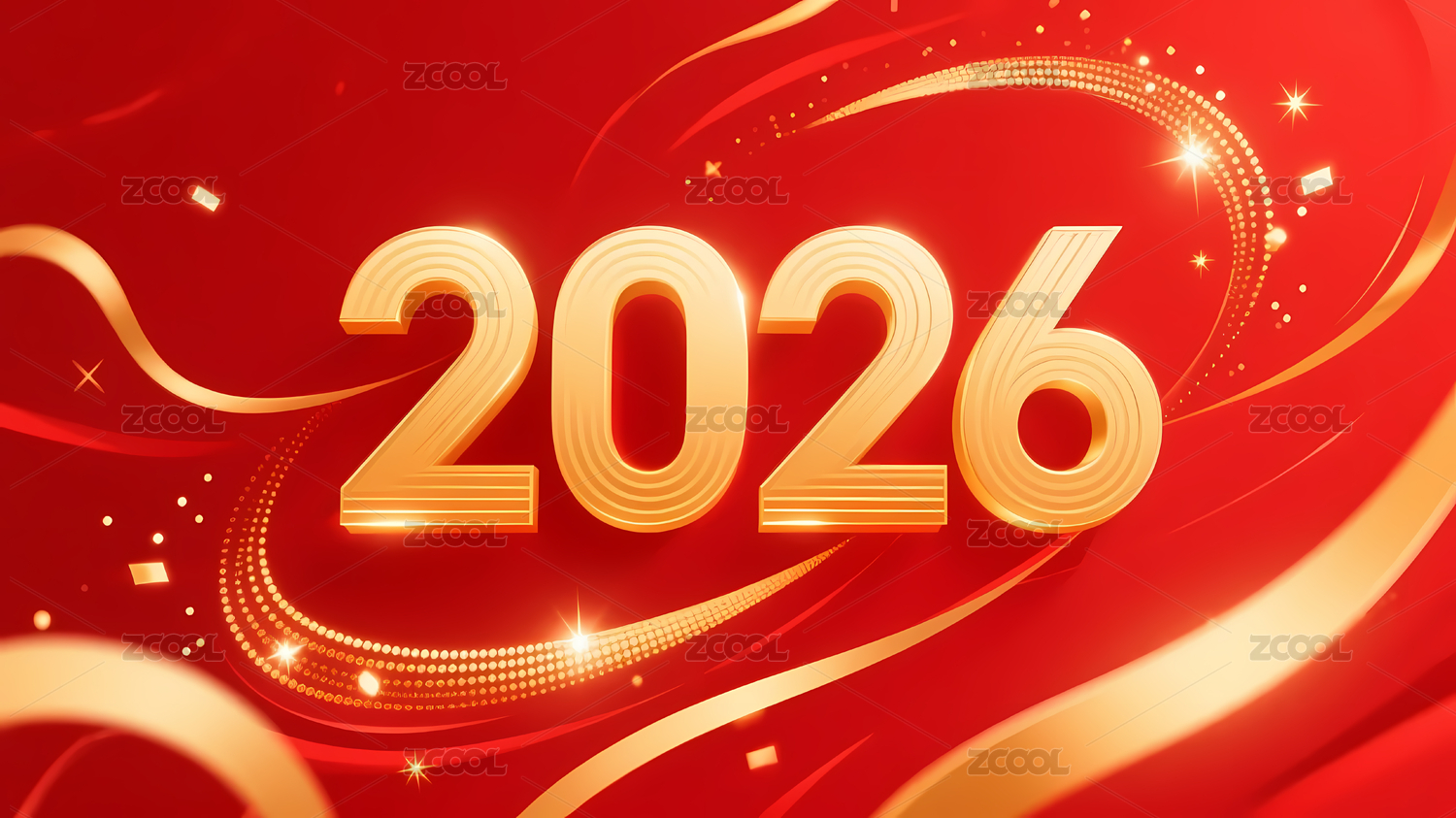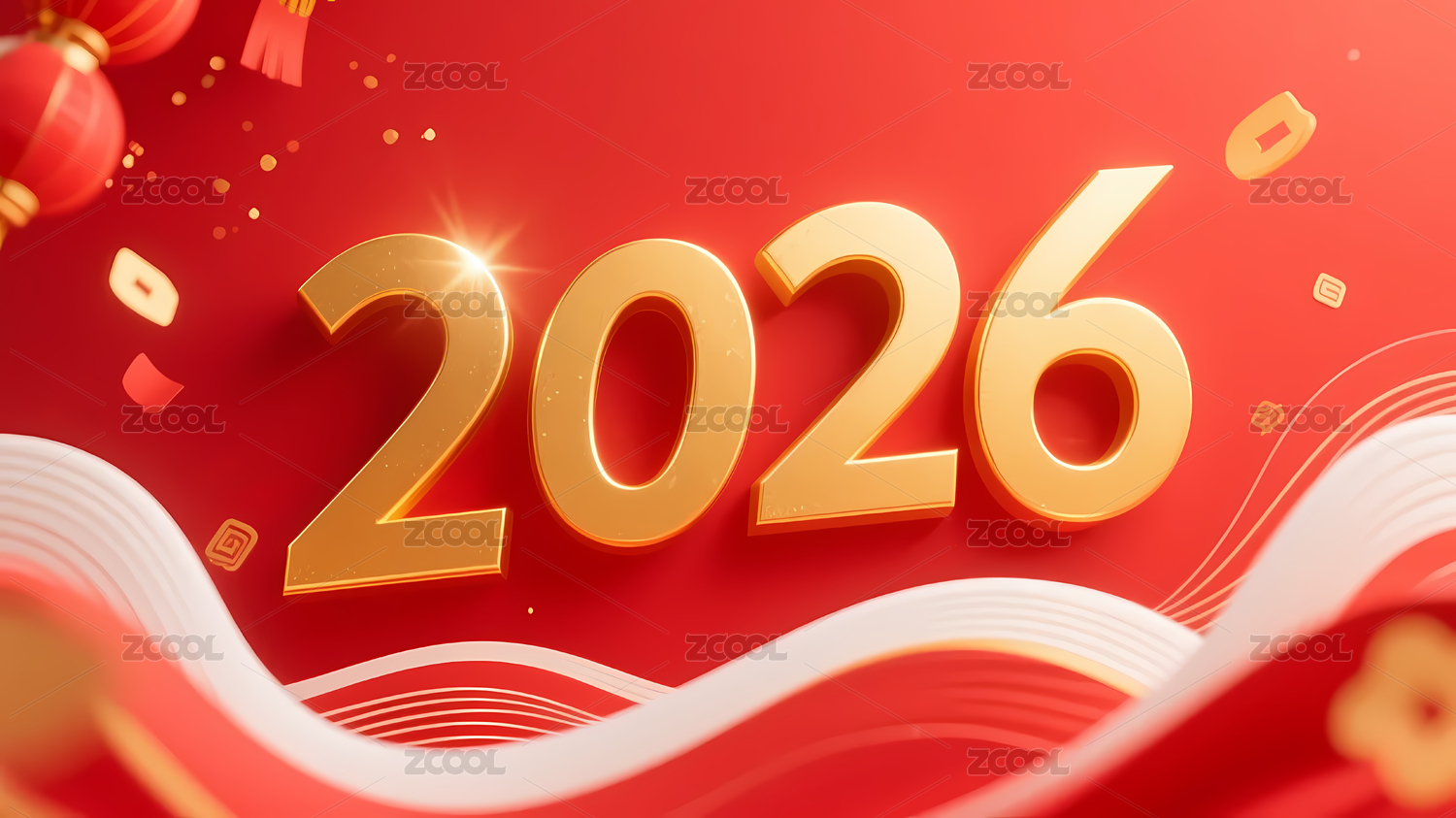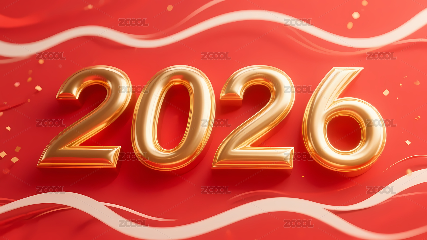 红色,装饰,金色,白色,节日,数字,2026,波浪,欢庆,喜庆