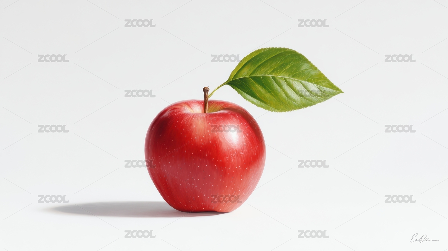 一颗红苹果带着一片绿叶子
