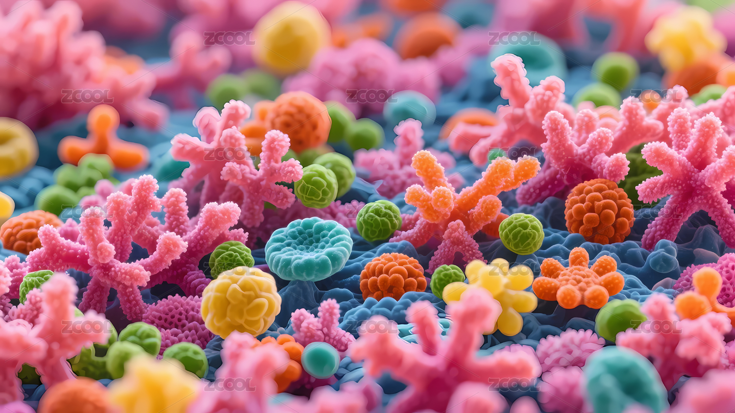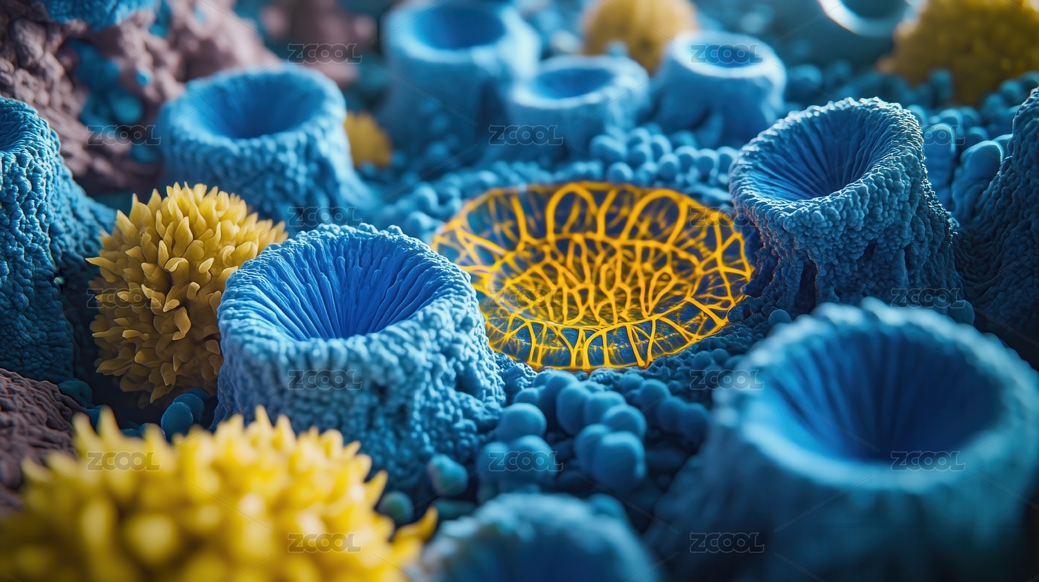 蓝色,主体,绿色,结构,黄色,粉色,珊瑚,海底,多彩,景象