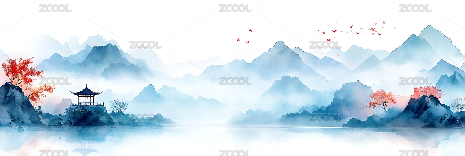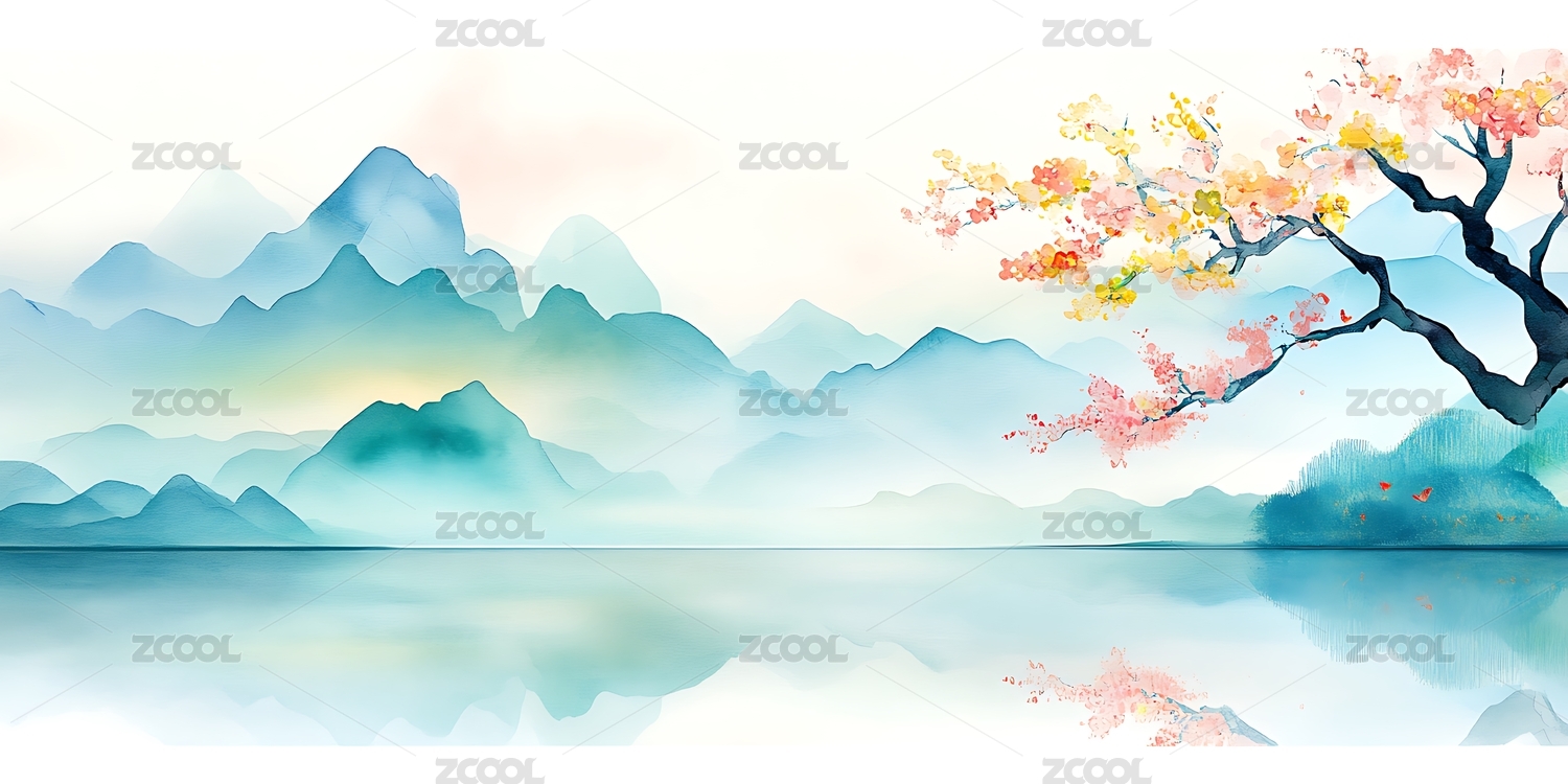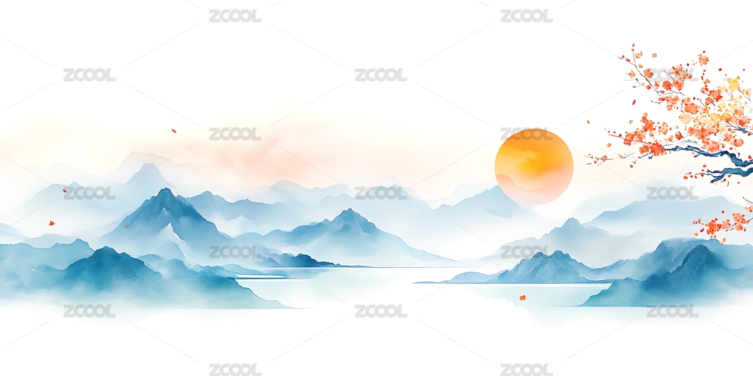 山水,装饰画,水墨画,意境,朦胧,云彩,山水画,远山,水彩,山峦