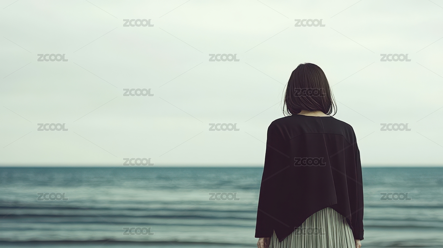 海边背影女子凝望远方