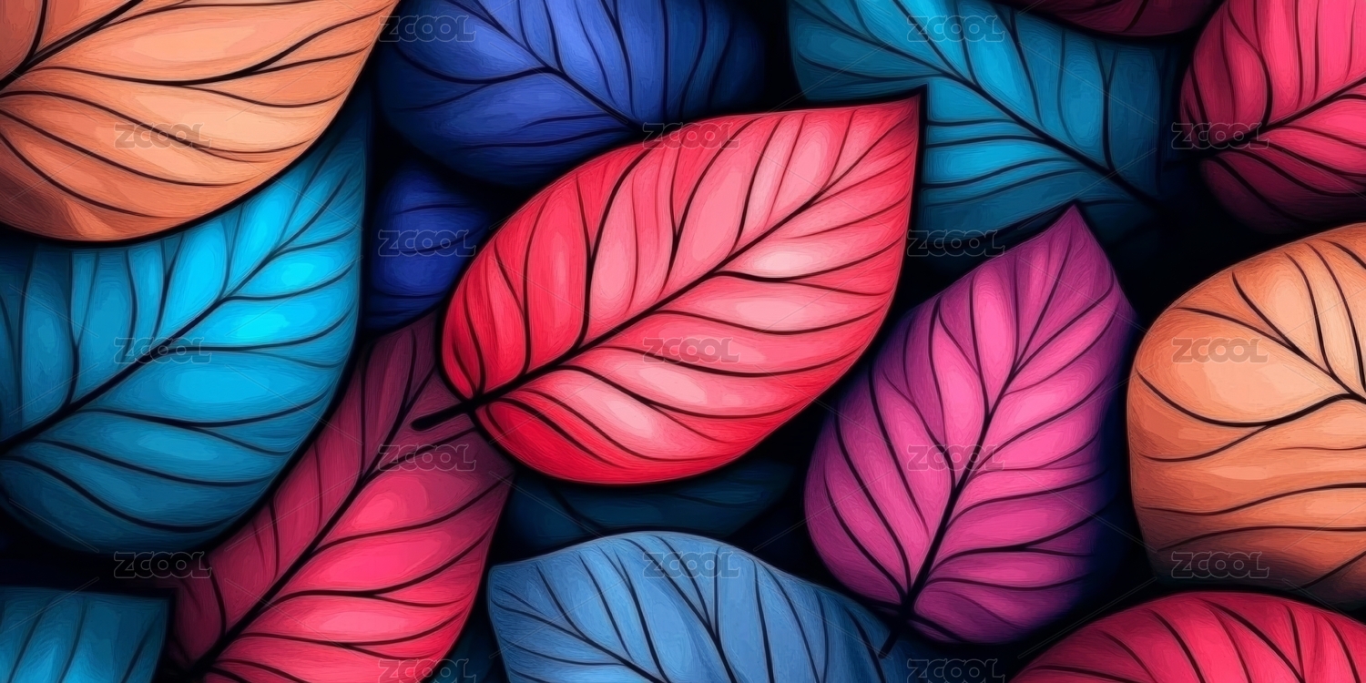 主视觉,彩叶,艺术,装饰,场景,彩色,树叶,植物,插画,设计