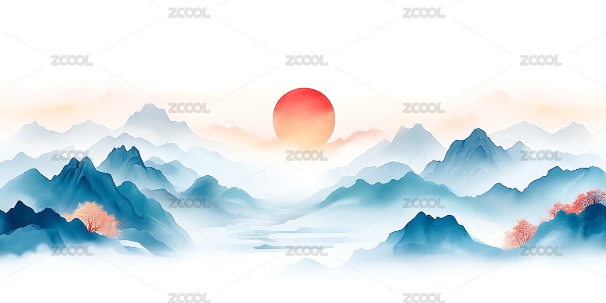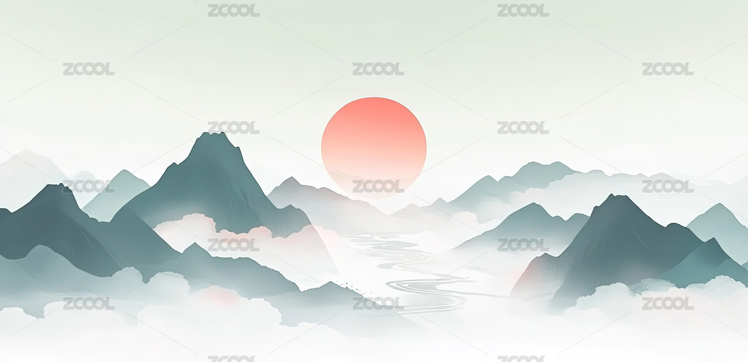 水墨山水日出