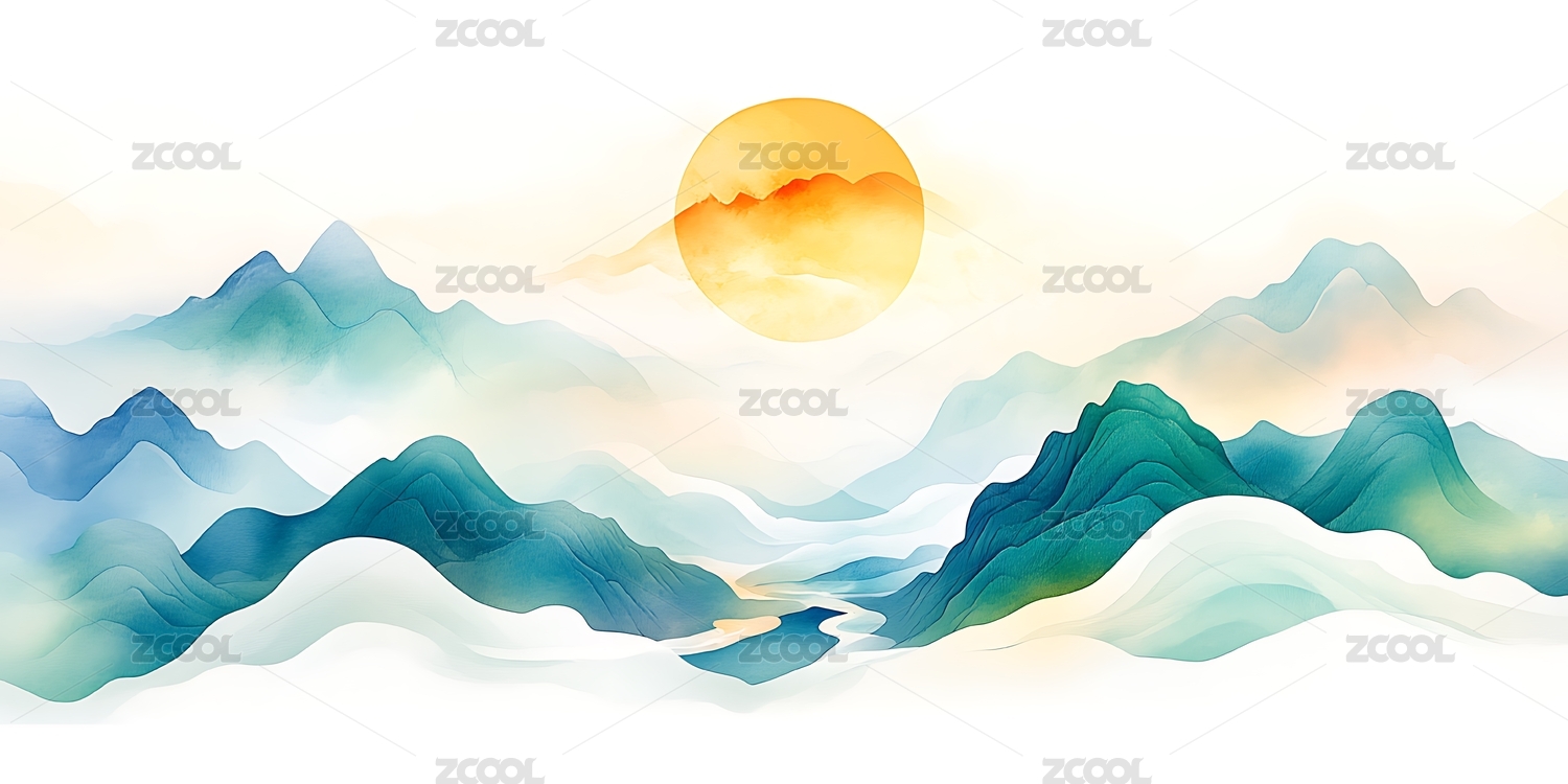 山水日出意境画