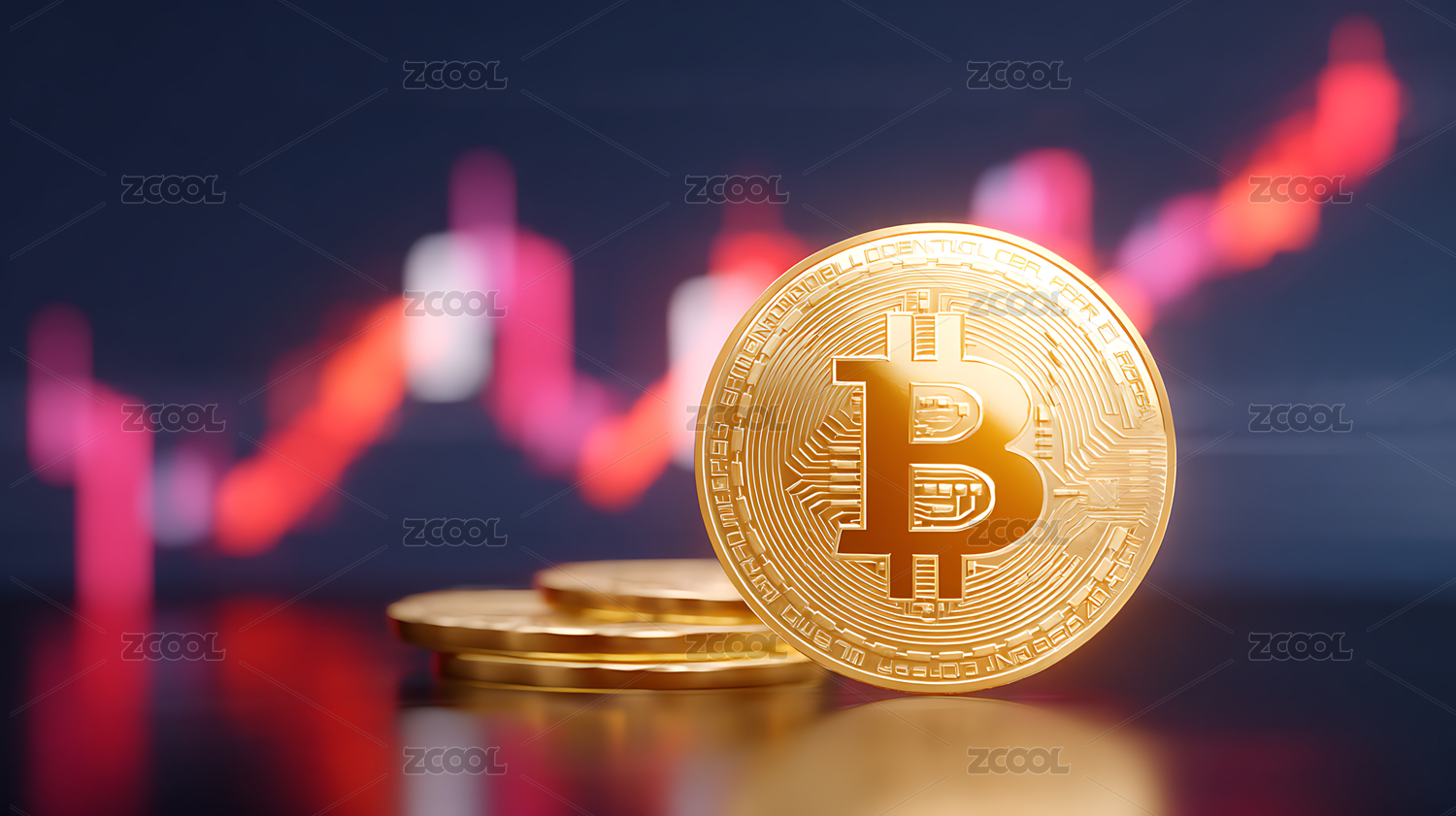 比特币硬币配红蓝图表