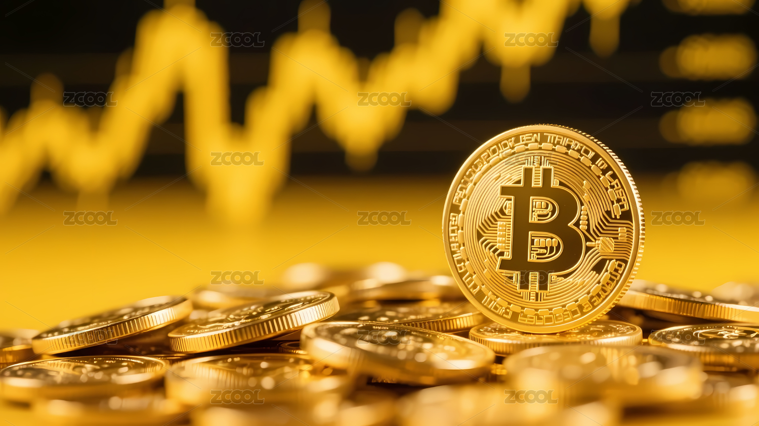 金色比特币配黄色图表