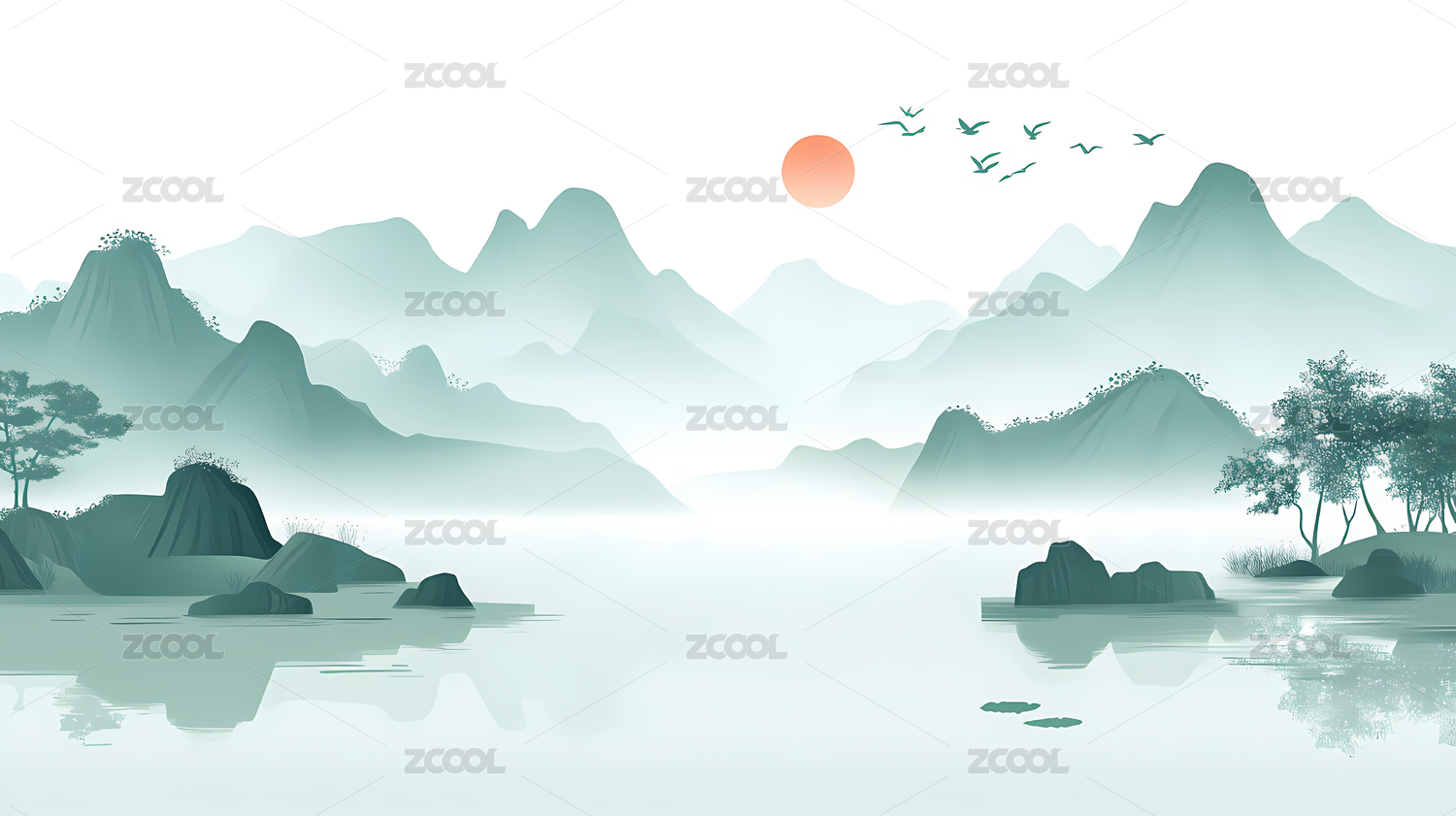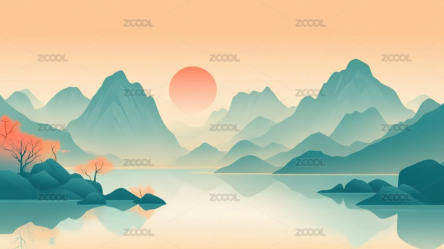 中秋,山水,月夜,简约,意境,风景,插画,自然,宁静