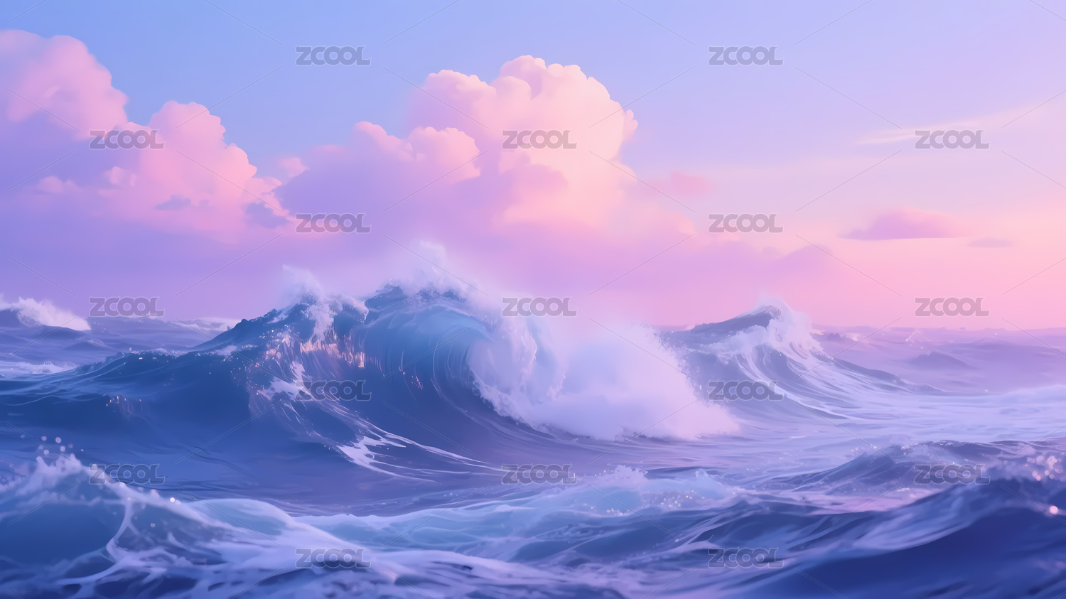 粉紫天空下的巨浪