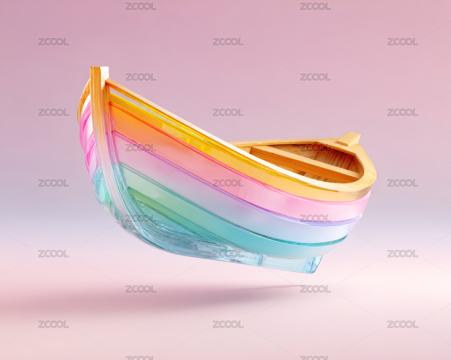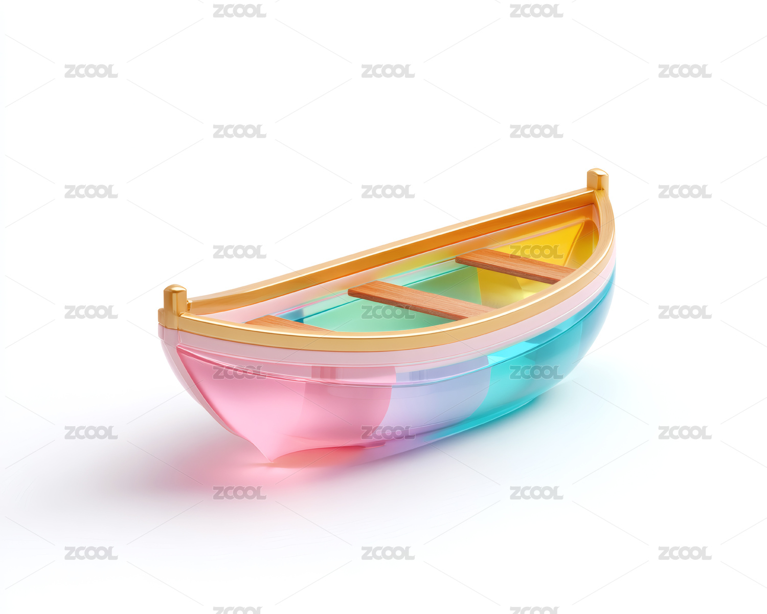 一艘彩色3D卡通木船