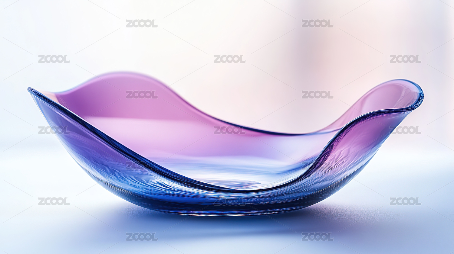 浅色背景下的蓝紫色透明渐变玻璃帆船装饰