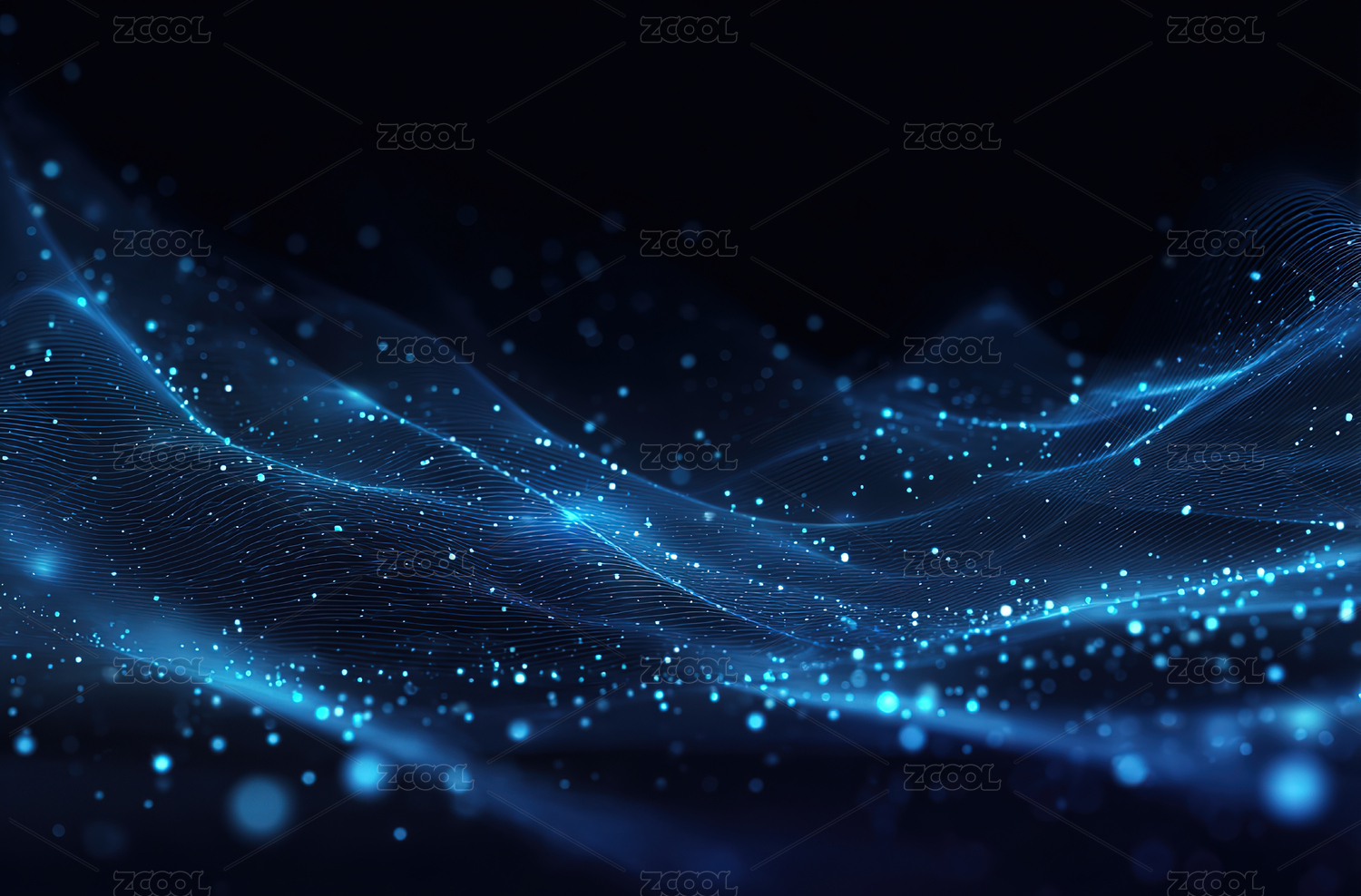 蓝色光效粒子波浪背景图