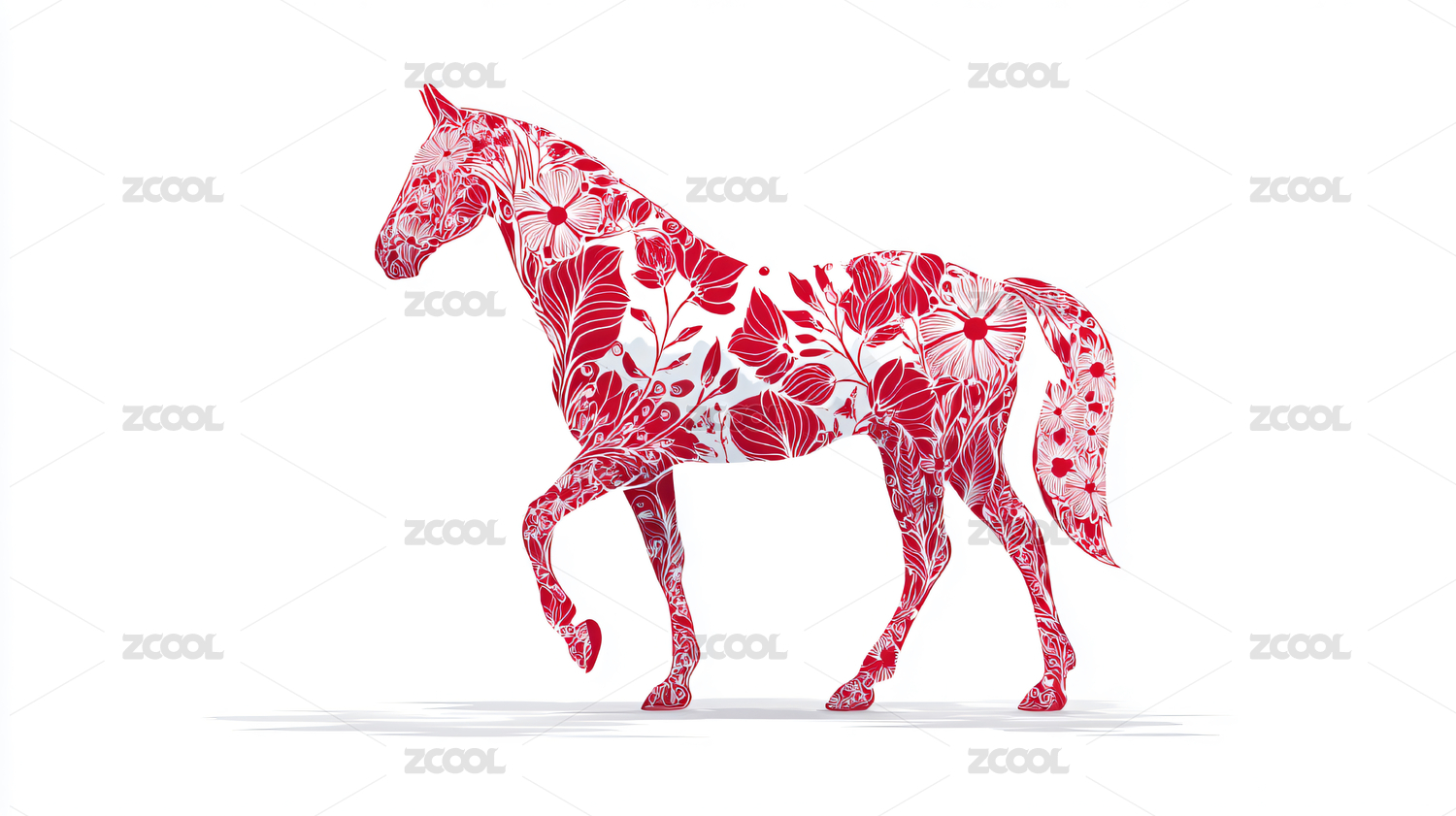 红色花卉装饰的马图案